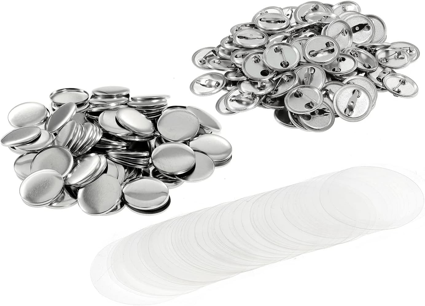 SET COMPLETO Ogni set include: 1 * guscio inferiore con stemma in ferro opaco, 1 * anello di gomma, 1 * coperchio superiore con perno in ferro e un pezzo di pellicola di plastica trasparente. Con questo set puoi creare 100 bottoni pinback con retro in metallo opaco. Le parti in metallo opaco hanno una consistenza migliore e sono più resistenti rispetto ad altre parti in plastica. FACILE DA USARE Basta stampare qualsiasi immagine, foto, ritratto su carta, tagliarla in pezzi adatti (della stessa dimensione della pellicola) e realizzare spille con una macchina e un anello di gomma. NOTA: la macchina non è inclusa. AMPIA APPLICAZIONE - Puoi realizzare badge con motivi diversi. Adatto al normale utilizzo familiare. Puoi anche allestire il tuo stand nei mercatini delle pulci o nelle fiere e realizzare e vendere rapidamente bottoni. Con una fotocamera digitale e una varietà di parti di pulsanti, puoi scattare foto e venderle come prodotti finiti.