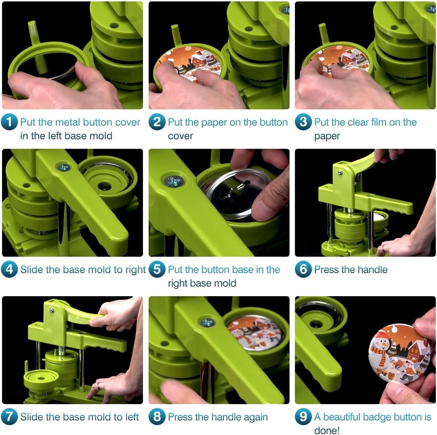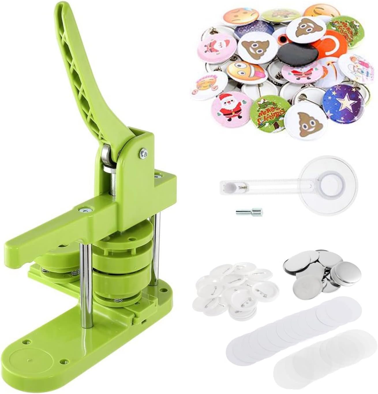 KIT COMPLETO PER LA REALIZZAZIONE DI BOTTONI - La macchina per bottoni si adatta a 58 mm / 2,28 pollici / ca. Badge per bottoni da 2-1/4 pollici, con 100 parti di bottoni, 100 pezzi di carta bianca e un taglierino circolare. Basta stampare il modello e creare il proprio badge! La macchina per bottoni può essere regalata anche ai bambini e agli appassionati del fai da te. MATERIALE PLASTICO DI ALTA QUALITÀ - Plastica rinforzata per un funzionamento facile e robusto. L'impugnatura dal design ergonomico con impugnatura comoda consente di realizzare carte d'identità in modo rapido e con risparmio di manodopera. PER LA REALIZZAZIONE PRECISA DI BADGE - La piastra scorrevole migliorata è più precisa per un funzionamento rapido della guida di scorrimento e un alto tasso di successo. La parte rialzata impedisce alla fustella di scivolare fuori dalla macchina posizionando con precisione il badge. AMPIA APPLICAZIONE - Puoi realizzare badge con motivi diversi. Adatto al normale utilizzo familiare. Puoi anche allestire il tuo stand nei mercatini delle pulci o nelle fiere e realizzare e vendere rapidamente bottoni. Con una fotocamera digitale e una varietà di parti di pulsanti, puoi scattare foto e venderle come prodotti finiti.