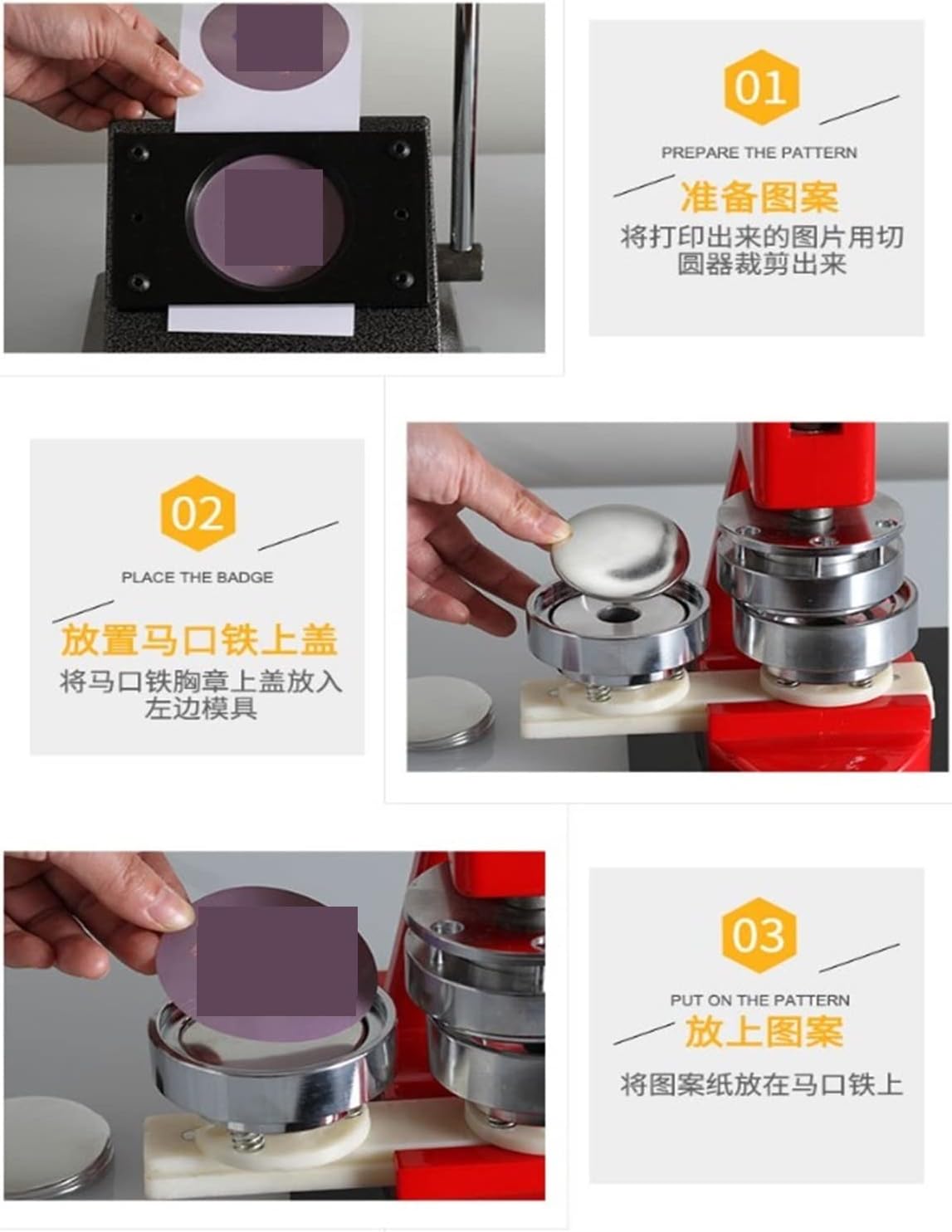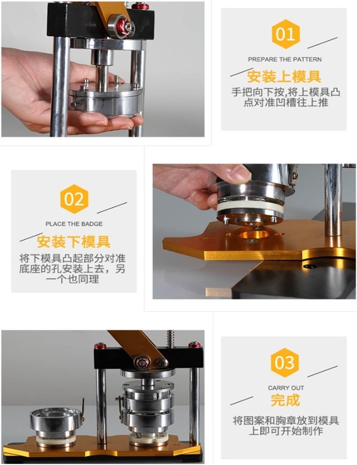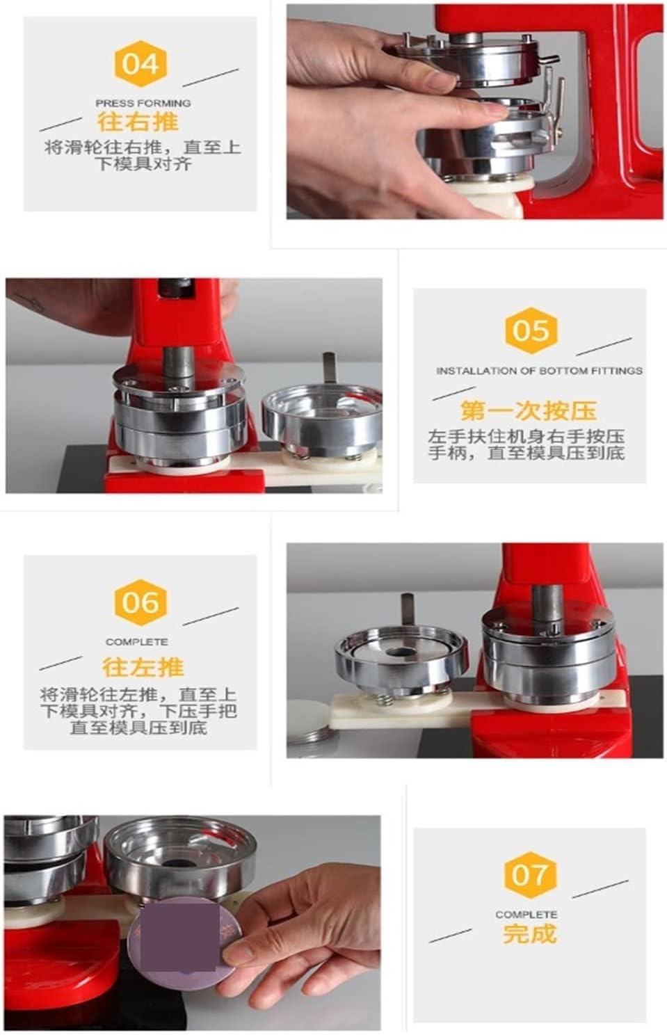 La macchina per bottoni è perfetta per creare bottoni fai da te. La macchina per bottoni ti consente di creare una varietà di bottoni personalizzati utilizzando materiali per bottoni personalizzati. È facile da usare, piccolo, leggero e bello, può essere azionato dal flusso ed è facile da imparare a mano. La macchina per carte d'identità professionale può essere prodotta in serie, il che è semplice e fa risparmiare manodopera. L'impugnatura dal design ergonomico offre una presa comoda e consente di risparmiare energia. La maniglia imbottita è facile da usare e richiede poca forza per premere un pulsante, rendendo la macchina molto facile da usare. La base rotante consente di rendere più precise le matrici intercambiabili. Liscio e veloce da ruotare, facile e veloce da installare.