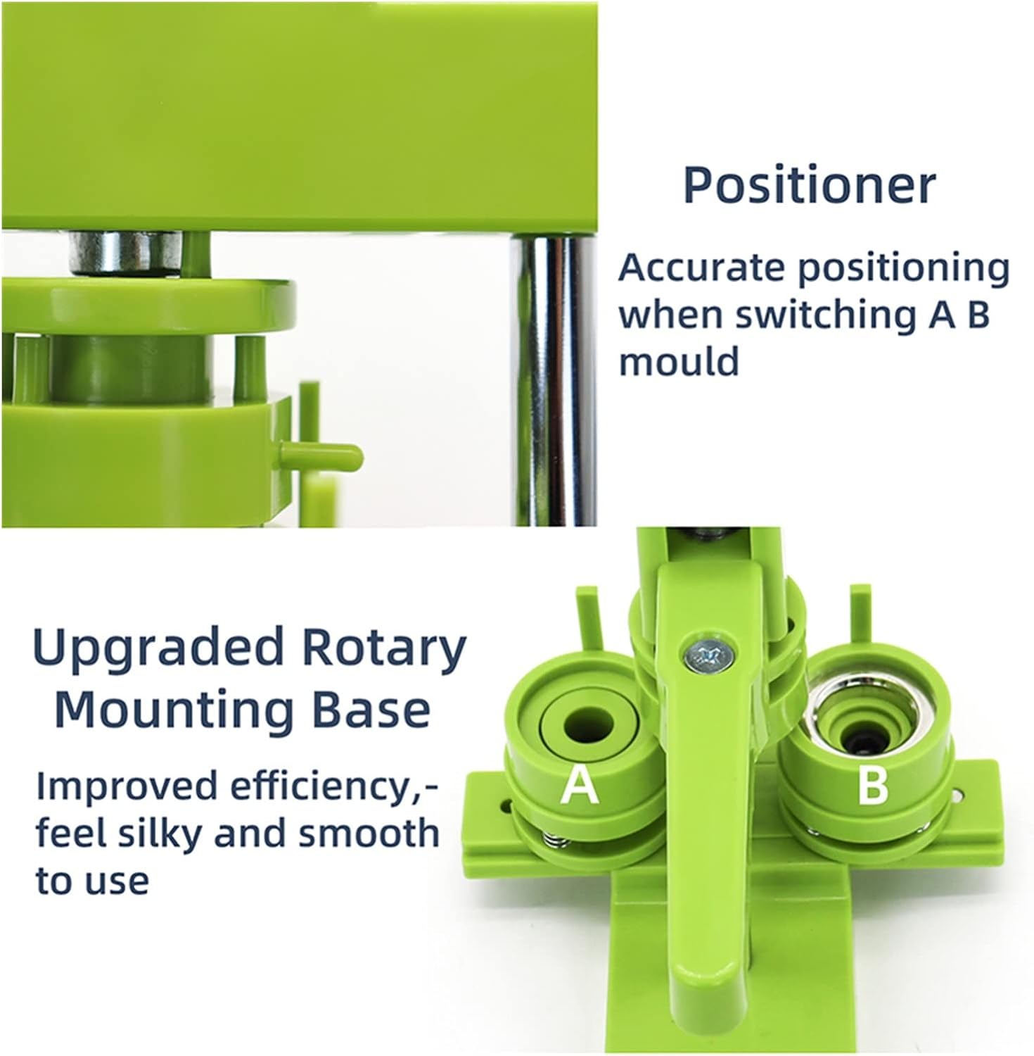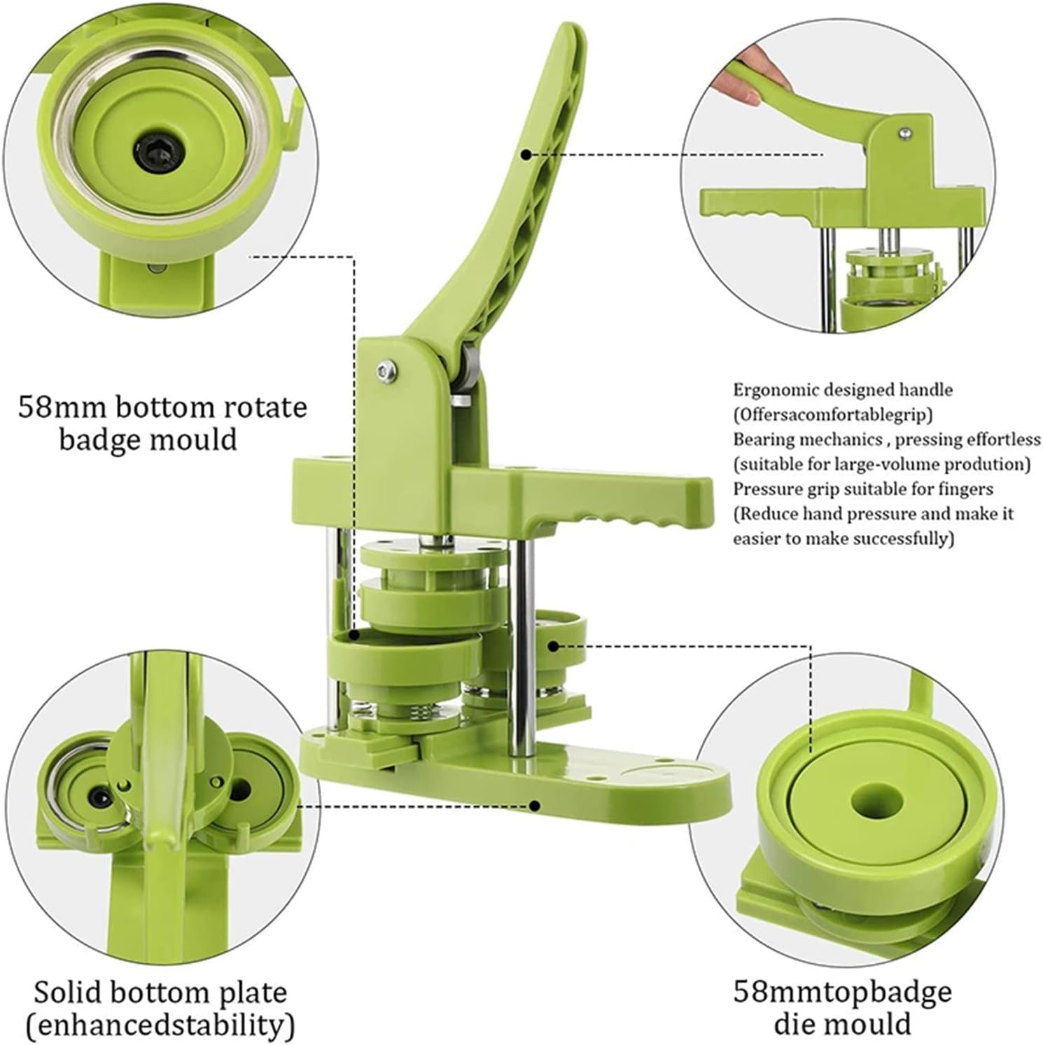 Può sostituire i tipi di stampi, basta acquistare una macchina. Macchina per la produzione di badge che può realizzare piccoli regali come spille, specchi, apriscatole, grucce, rosette, portachiavi, ecc. Questa macchina utilizza tecnopolimeri ad alta resistenza, il corpo della macchina e lo stampo sono integrati, è leggera, lunga durata e funzionamento facile, sfruttando appieno l'abilità pratica del bambino. * Produzione veloce, rendimento elevato * Sicuro e durevole, basso tasso di guasto, senza manutenzione professionale