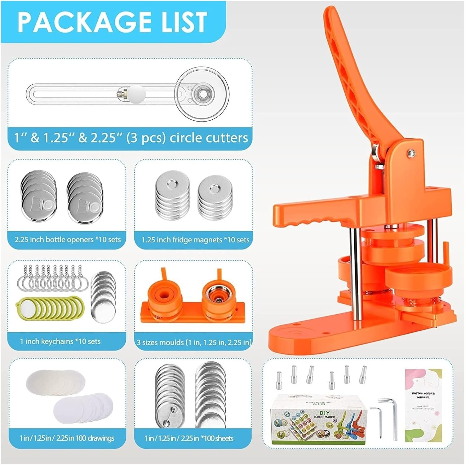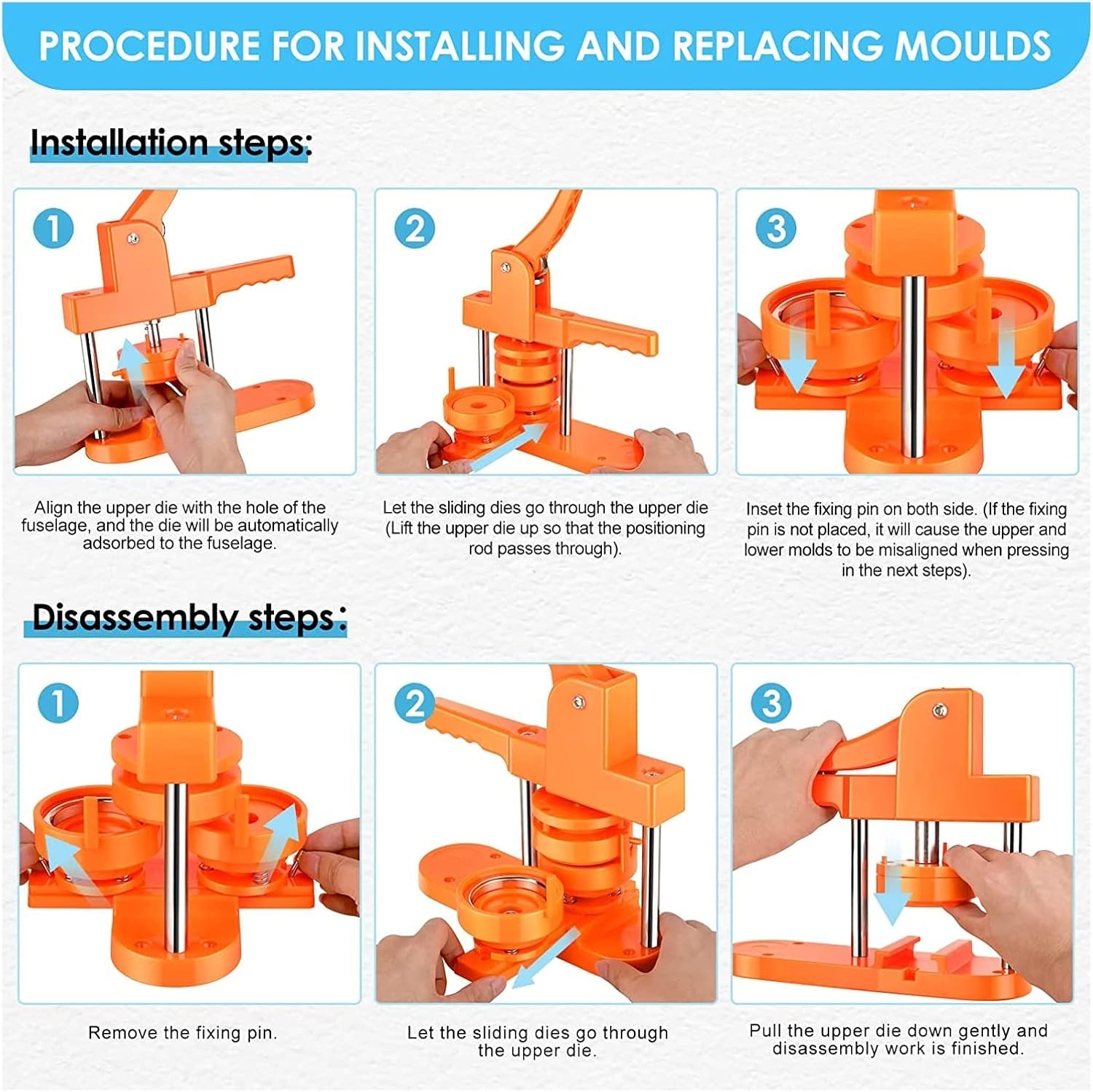 Puoi convertire facilmente e liberamente il modello in un produttore di badge di diverse dimensioni (1", 1,2", 2,2") in base alle tue esigenze. La punzonatrice per bottoni ha uno speciale design scorrevole, che può creare badge, il che è più conveniente e fa risparmiare manodopera. Questo produttore di bottoni è realizzato in materiale di alta qualità e plastica tecnica ad alta resistenza, che è forte, leggera e durevole. A differenza delle macchine per la produzione di bottoni in metallo, è portatile, antiruggine e ha migliori proprietà meccaniche. Nella pagina Immagine, puoi trovare istruzioni dettagliate e video operativi per imparare come installarlo e crea il badge. Credo che imparerai rapidamente. Puoi utilizzare diverse immagini per creare badge fai-da-te in più dimensioni con tuo figlio, che può sviluppare l'immaginazione, la creatività e la destrezza manuale di tuo figlio e goderti il felice momento del fai-da-te con i tuoi figli progettando e creando badge con i tuoi figli.