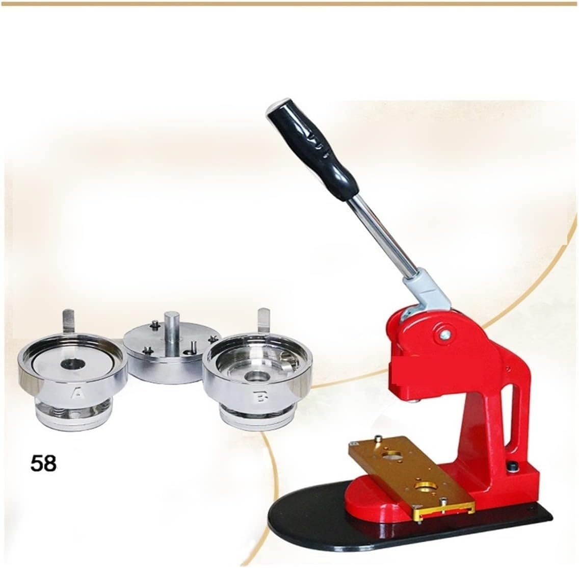 Macchina per badge. Multifunzione. Puoi usarlo per creare tipi di badge. Questa macchina per bottoni viene fornita con un set di stampi adatti per realizzare badge per bottoni da 5,8 cm. La base scorrevole consente di spostare la matrice metallica in modo più accurato e rapido grazie al funzionamento con binario scorrevole. La maniglia in acciaio dal design ergonomico offre una presa comoda e consente di risparmiare energia. E' una macchina fantastica, facile da usare, veloce e funziona benissimo. Ampiamente utilizzato per creare pulsanti personalizzati per eventi politici o eventi sportivi, ecc.