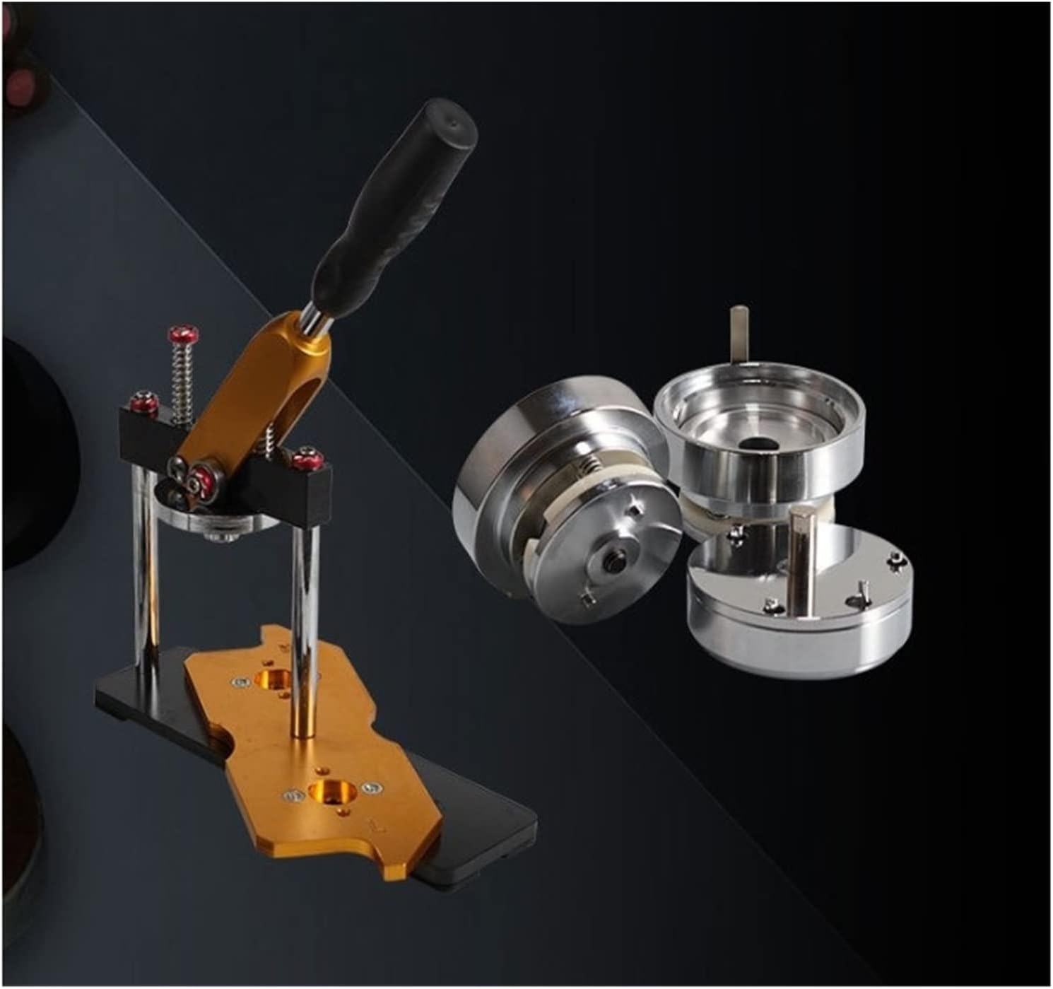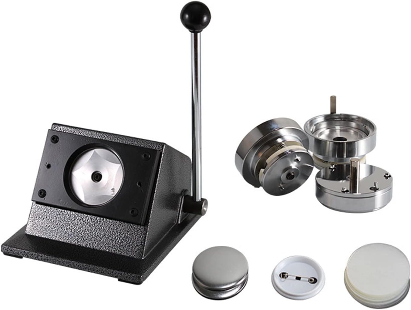 La pressione del pulsante è sicura e durevole; I set sono sostituibili; Facile da installare e facile da imparare. Il produttore di bottoni è realizzato con materiali ad elevata durezza. Il corpo in ghisa con base in metallo lo rende robusto e durevole. E la struttura ragionevole rende la tua operazione più sicura e piacevole. L'impugnatura della macchina per bottoni è progettata ergonomicamente. Fornisce una presa comoda per te. Inoltre, la gomma antiscivolo sulla parte superiore dell'impugnatura previene gli incidenti. Le trafile in acciaio inox sono intercambiabili. Puoi cambiare altre dimensioni se necessario. Il cursore in plastica del creatore di spilli può aiutare con il posizionamento preciso e semplificare il processo di creazione dei pulsanti. Questa macchina per produrre bottoni è ottima per spille, cordoncini, portachiavi, apribottiglie, ecc. Vengono spesso utilizzati per realizzare bottoni fatti in casa per campagne politiche o eventi sportivi.
