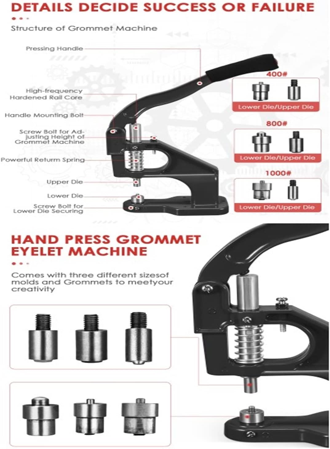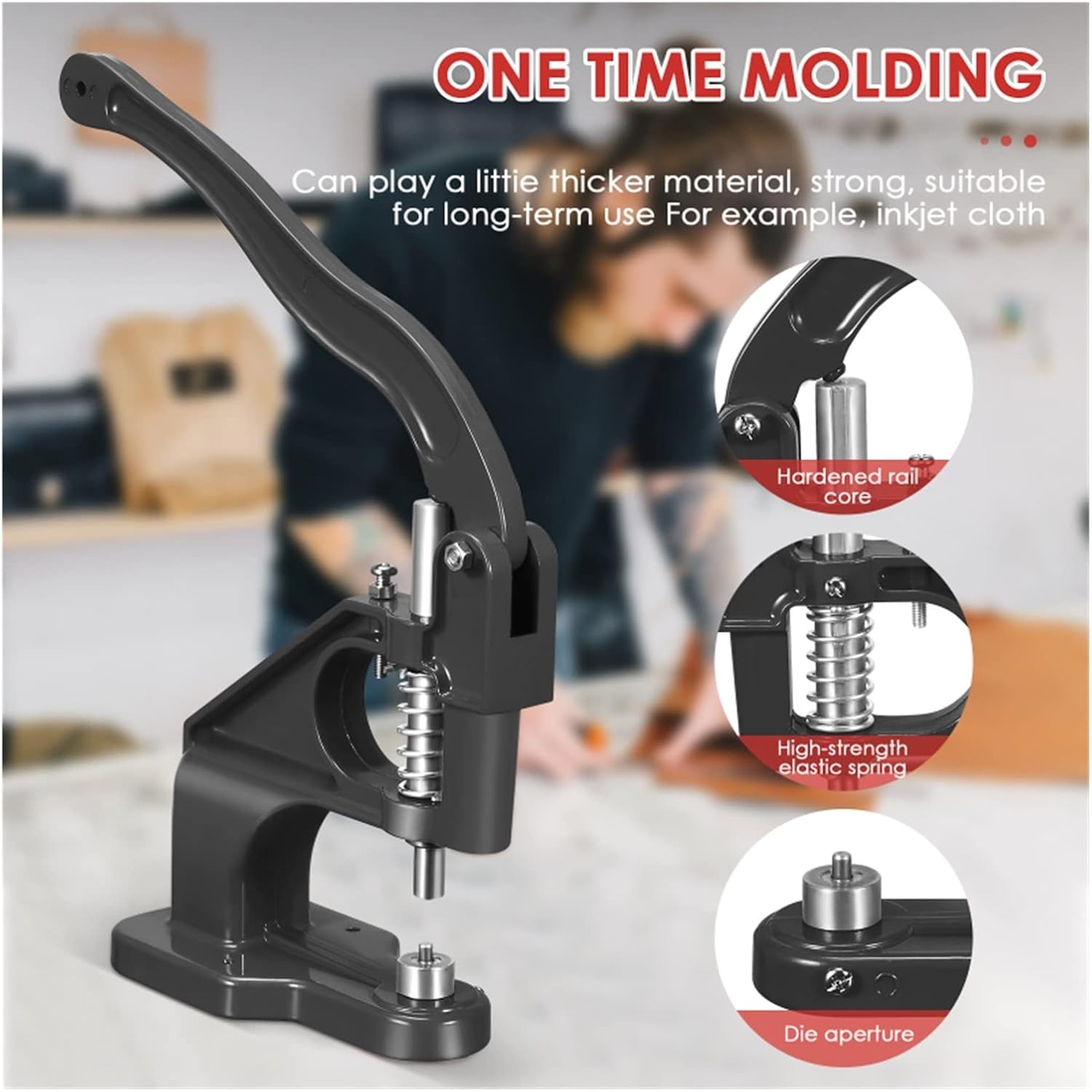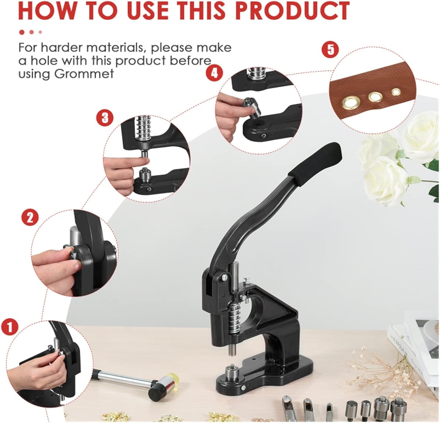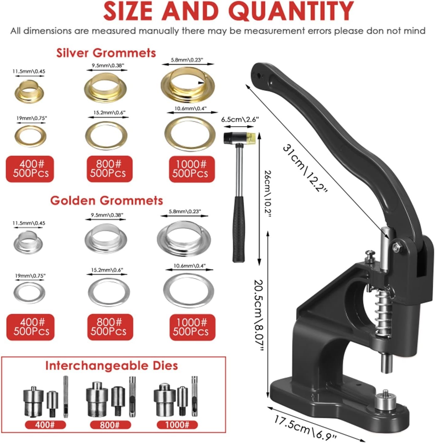 [3000 asole] Dotato di 1 asolatrice con pressa manuale pesante, 3 forme (#0#2#4) e 3000 asole in 3 dimensioni e 2 colori (6, 10, 12 mm), strumenti di punzonatura (6 mm, 10 mm, 12 mm), c'è anche un martello per aiutarti a praticare i fori e il gran numero di asole può essere utilizzato anche per un lungo periodo. [Facile da usare] Bastano pochi secondi per l'installazione sul dispositivo. Quindi il materiale da pressare viene posizionato senza prima forarlo e l'utensile può essere utilizzato anche come punzone. Infine, inserisci la fibbia e premila con una lunga maniglia. Per i clienti che utilizzano questo strumento per la prima volta, abbiamo preparato le istruzioni. In effetti, la maggior parte delle persone può usarlo facilmente senza manuale. [Design pratico] 3 forme intercambiabili e strumenti di punzonatura: n. 0 (1/4 di pollice), n. 2 (3/8 di pollice), n. 4 (1/2 pollice), soddisfano le esigenze di diverse dimensioni. Rispetto alle tradizionali pinze per occhielli, questa punzonatrice per occhielli pressata a mano consente di inserire l'occhiello ulteriormente nel materiale, non solo lungo il bordo. [Facile da usare] Rispetto ai martelli tradizionali, la macchina per anelli di tenuta è più veloce, più pulita e più precisa. Il design con impugnatura lunga della macchina consente di risparmiare molto sforzo e l'asola rimane intatta dopo la pressione. Inoltre, la macchina con fibbia può essere fissata sul tavolo o utilizzata in modo indipendente, il che è conveniente per i clienti con esigenze diverse. [Ampia applicazione] Questa macchina per asole a pressione manuale è un'attrezzatura necessaria per produttori di abbigliamento, artigianato, negozi di insegne e produttori. Possono essere utilizzati per striscioni, cartelli, tende da sole, poster, tende, stampa digitale, album di ritagli, corsetti, cinture, borse, scarpe, ecc.