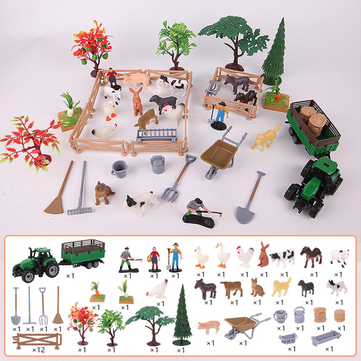 Giocattolo educativo perfetto per i bambini che amano giocare di ruolo e conoscere praticamente gli ecosistemi della fattoria Questo set da gioco da fattoria da 49 pezzi crea creatività con personaggi, animali, strumenti e piante realistici per avventure in fattoria coinvolgenti I bambini creano infinite piante di scenario, gravitano verso animali e raccolti nel loro mondo agricolo in miniatura raccolti La costruzione in plastica di durabilità presenta colori vivaci e realistici, inclusi strumenti di fattoria funzionali e modelli animali interattivi Promuove il gioco cooperativo e lo sviluppo cognitivo attraverso autentiche simulazioni di fattorie con accessori completi per la narrazione