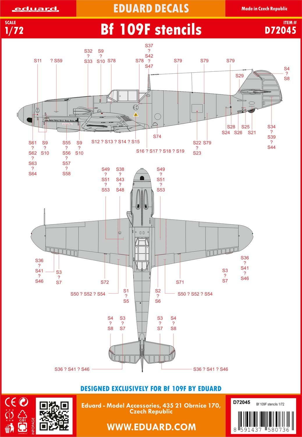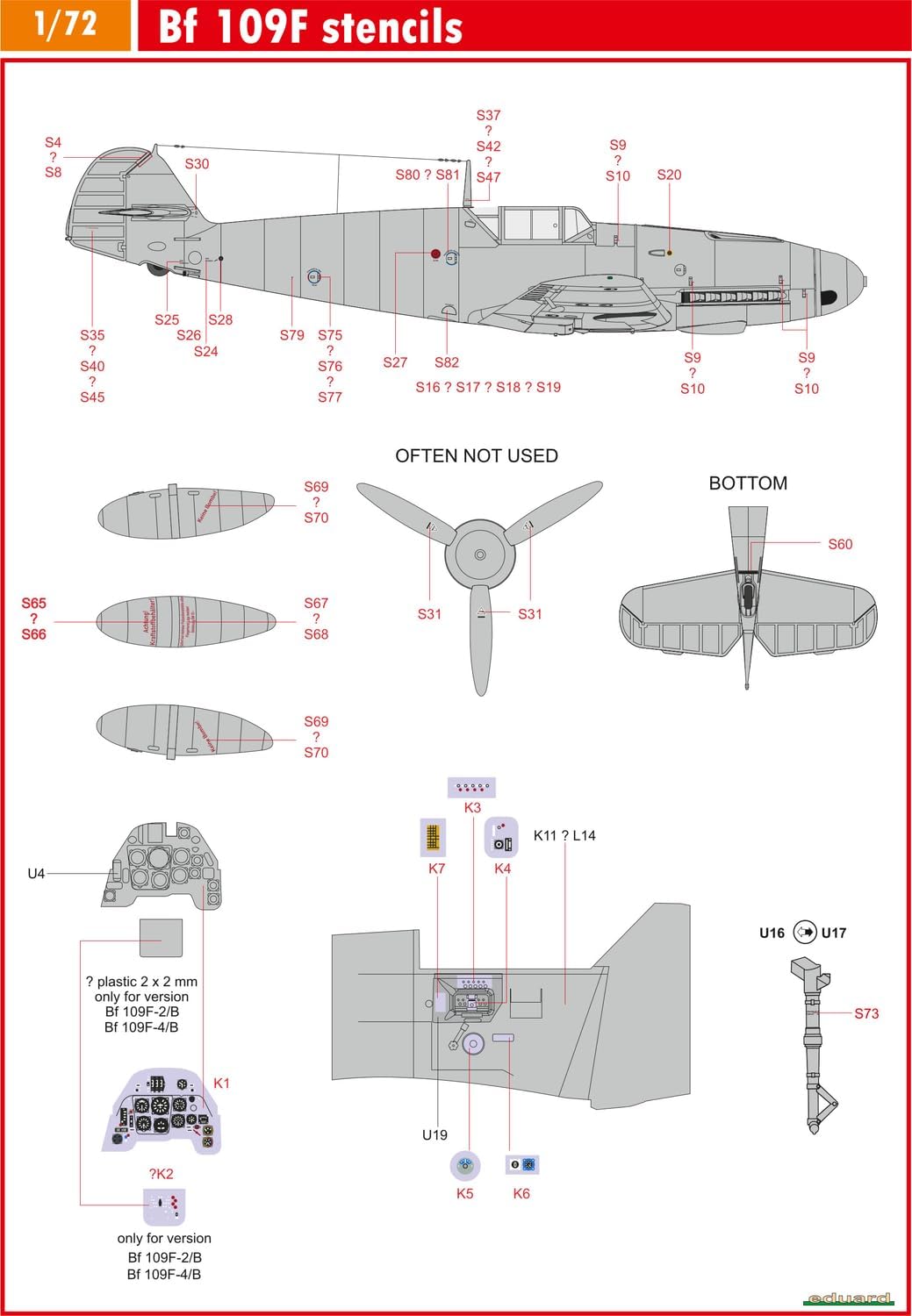 Adesivi Sprue Brothers Eduard 1:72 - Bf109F Stencils, EDUD72045