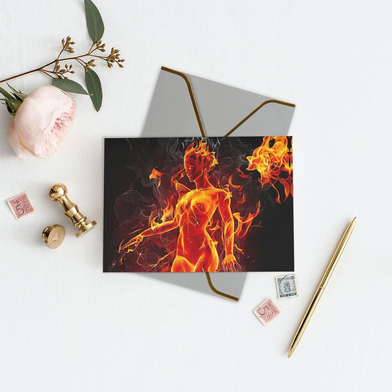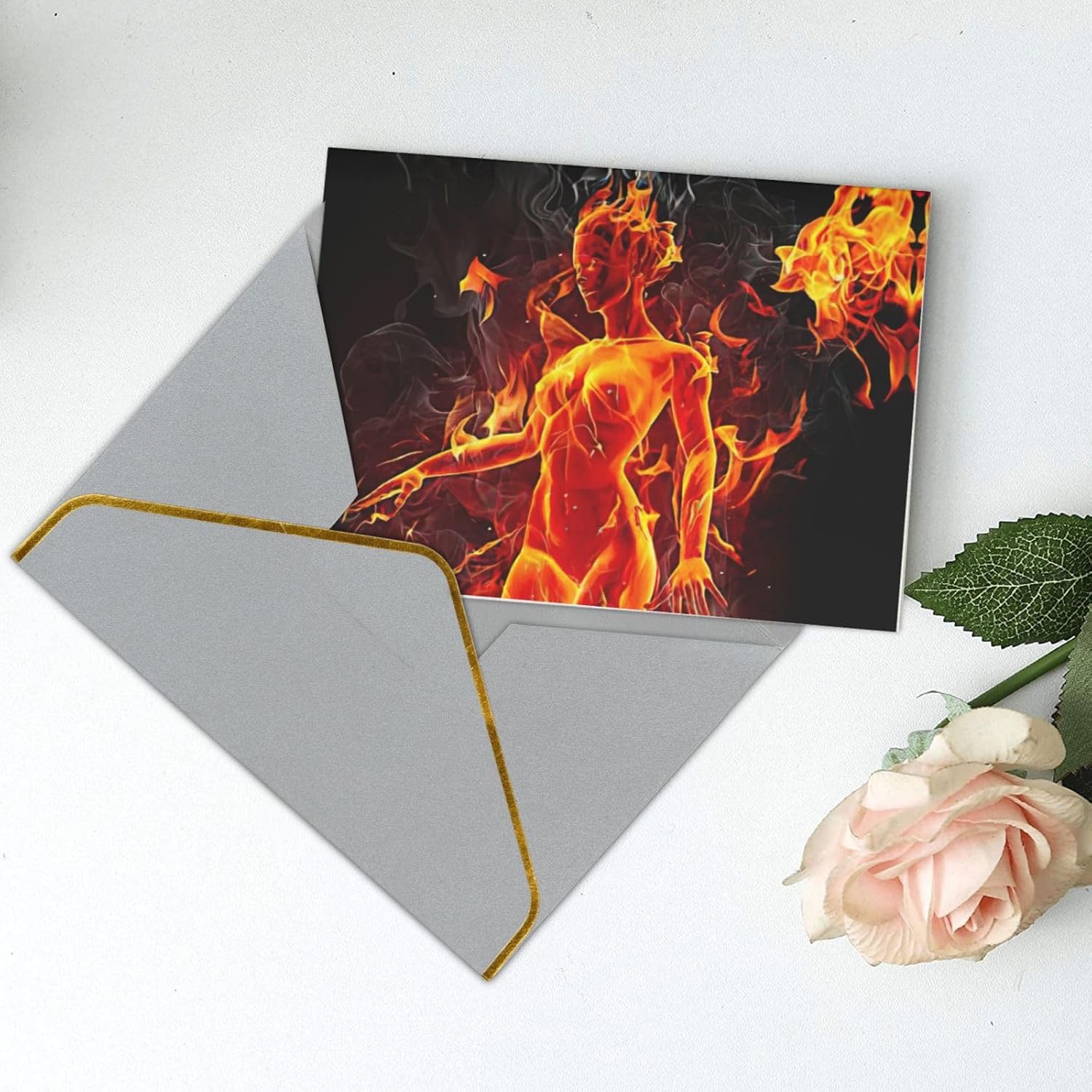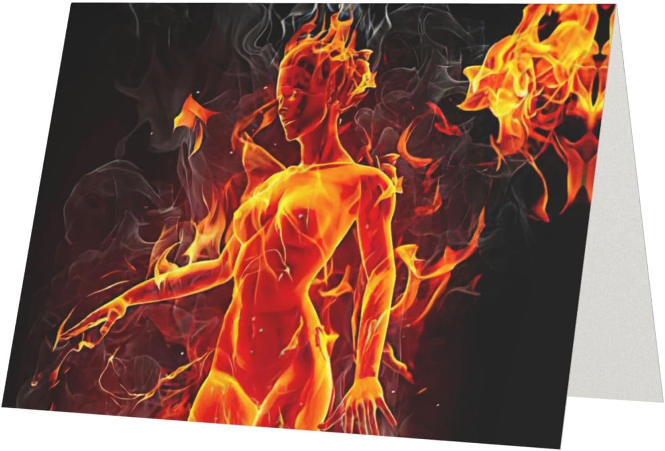 EdWal Versatile Greeting Card with Envelopes- Suitable for All Occasions,Blank Inside, 4,5 * 6inch-Fire Nude Woman Flame
