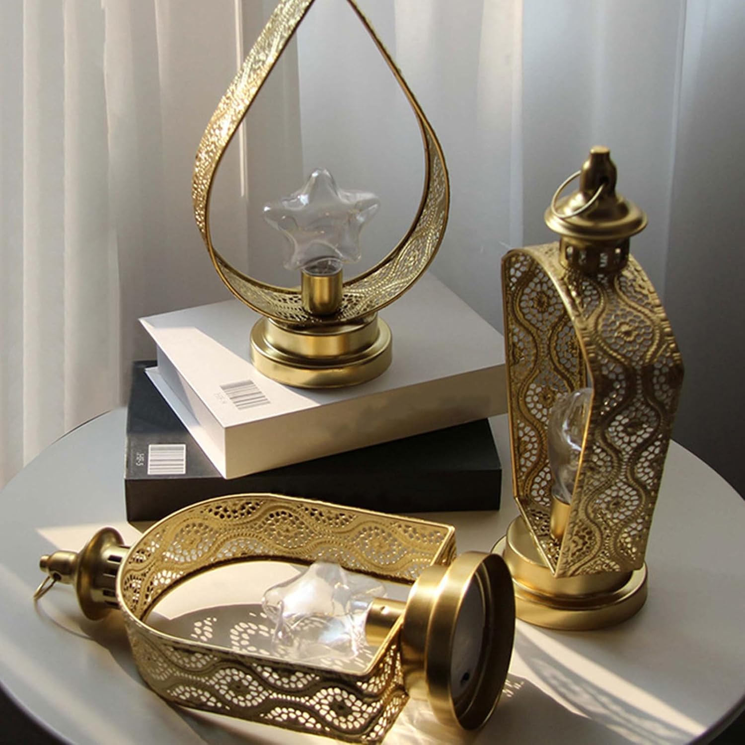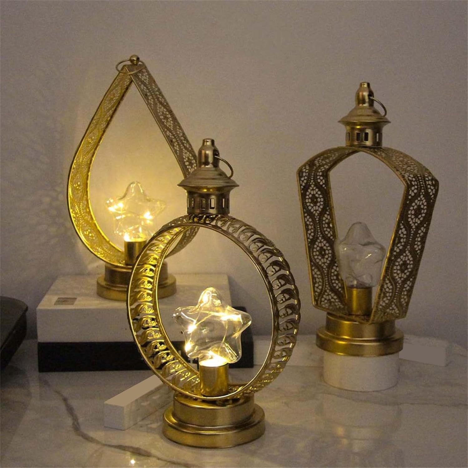 Questa lampada decorativa Star Hanging Light è un ottimo centrotavola per un ricevimento di nozze o celebrazioni del Ramadan Ideale per Ramadan, festival, tavoli da pranzo, case, riunioni, matrimoni, Natale e molto altro ancora Gli intricati design del ritaglio conferiscono autenticità agli ambienti Ramadan. Questa luce sospesa aggiunge un tocco fantastico alla tua festa Disegni per appendere un albero o un tavolo display. Questa luce sospesa include una fibbia superiore per appenderla facilmente Artigianato in ferro di alta qualità e design classico, integra sia l'ambiente moderno e tradizionale