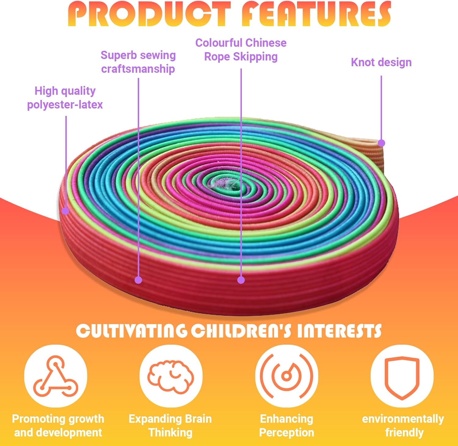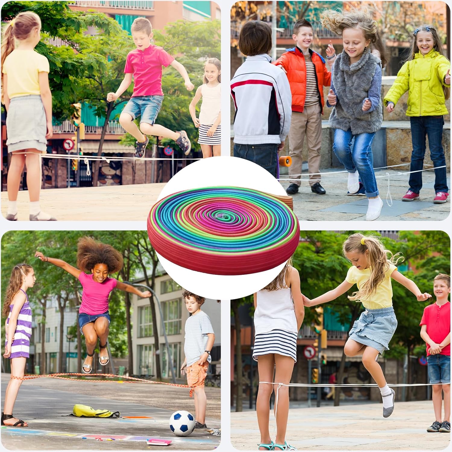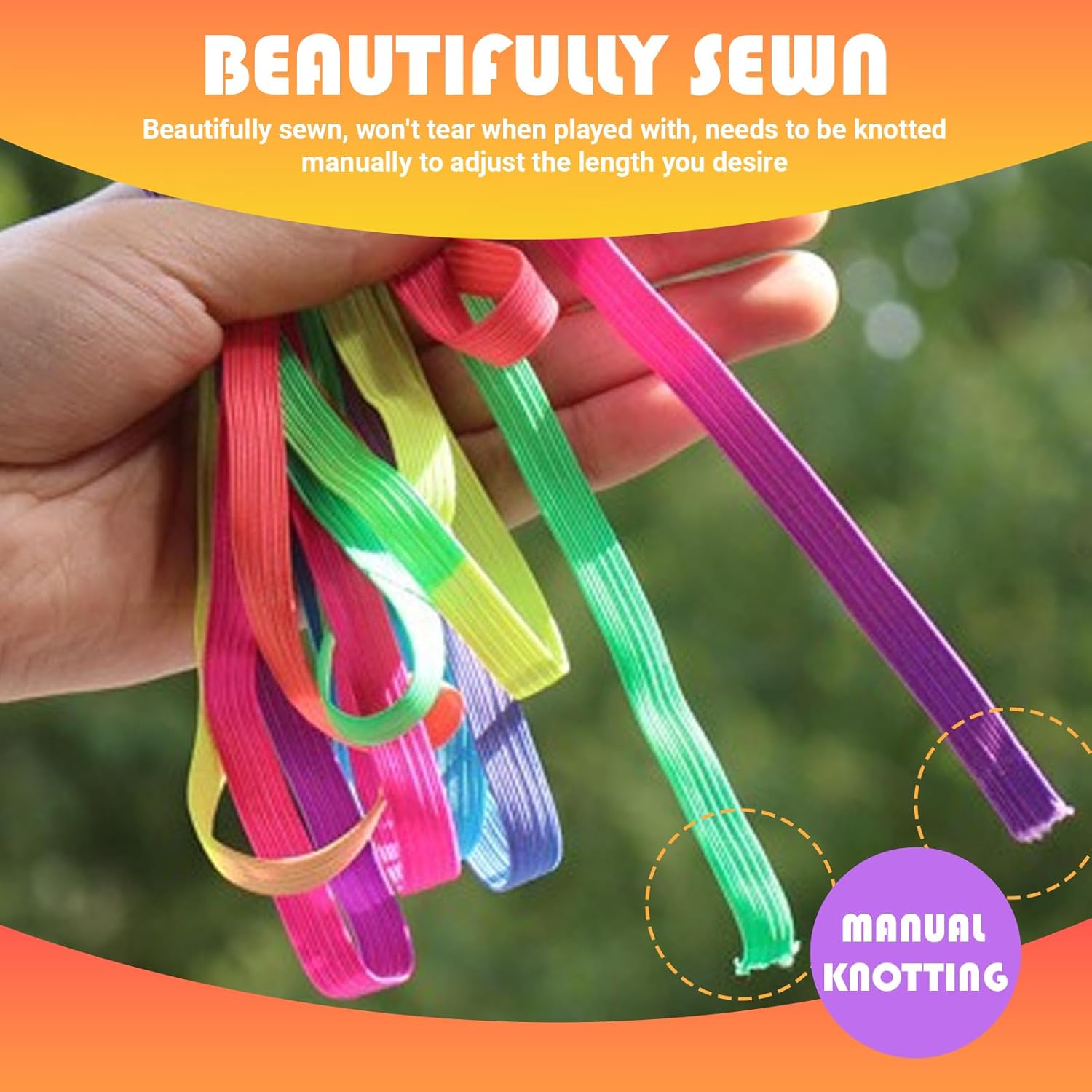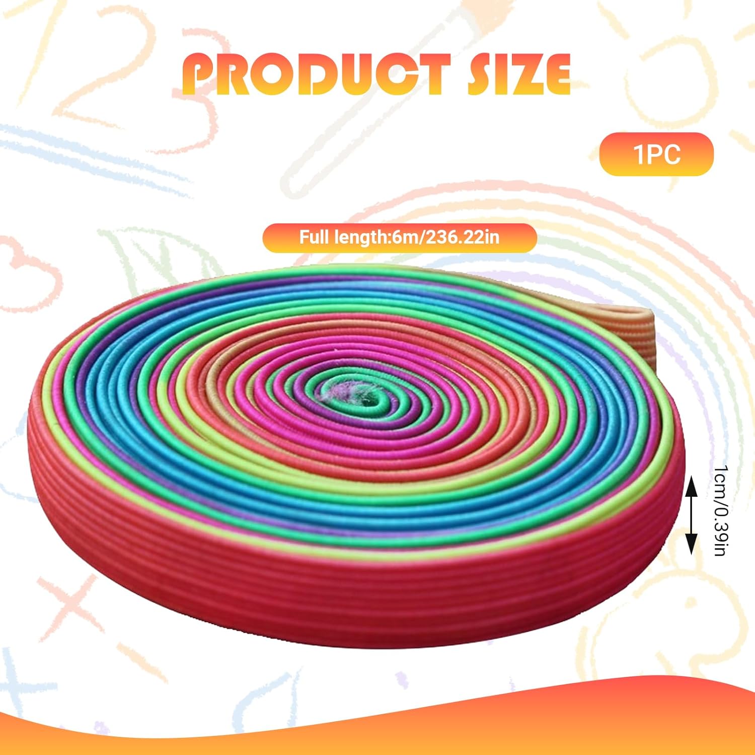 【Elastici arcobaleno】Gli elastici elastici elastici offrono divertimento ai bambini, allenando la forza delle gambe e la coordinazione mani-piedi. Promuovono anche il lavoro di squadra e migliorano le relazioni con i compagni. Nota: gli elastici devono essere annodati dall'utente 【Materiale di alta qualità】Gli elastici sono realizzati in lattice di poliestere di alta qualità, che offre buona elasticità e durata. Questo set di elastici è sicuro e adatto ai bambini 【Portatile e sicuro】Ogni elastico è lungo 6 m, largo 1 cm e spesso 0,1 cm, il che lo rende facile da trasportare. Il suo design piatto di 1 cm, anziché rotondo, si adatta perfettamente al piede e permette ai bambini di giocare comodamente 【Ottimo regalo】Questo rotolo di elastici per bambini è perfetto per bambini e bambine di tutte le età ed è il regalo perfetto per Pasqua, Capodanno, Festa dei bambini, iscrizione a scuola, Natale, compleanni e molto altro 【Ampia applicazione】Include un manuale di istruzioni dettagliato. Libretto di istruzioni, elastico per bambini. Può essere utilizzato come gioco interattivo per famiglie, attività durante le vacanze scolastiche, attività in giardino e giochi all'aperto. L'elastico per bambini assicura che ogni bambino si diverta nel giardino di casa, nel cortile della scuola, all'interno e all'esterno