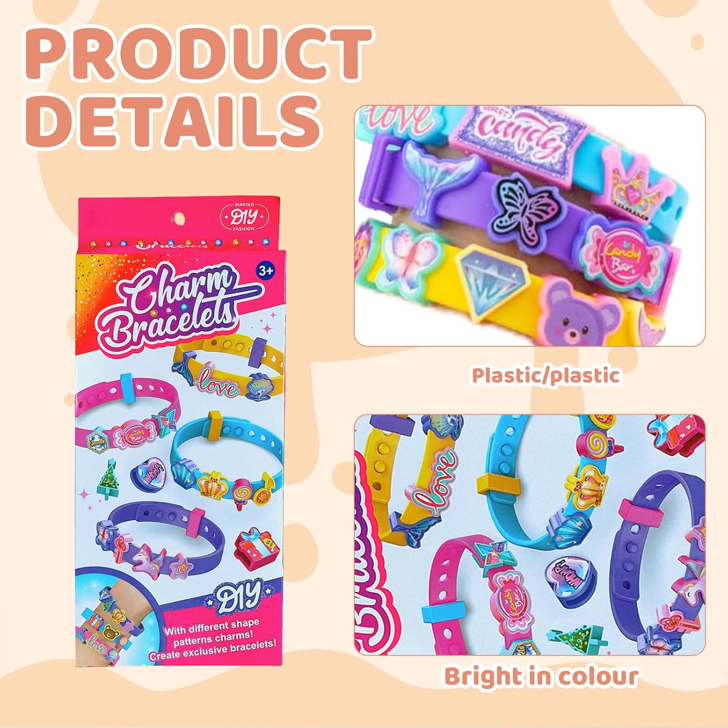 Lista di imballaggio: riceverai 4 braccialetti in silicone, 2 adesivi, 2 set di perline. Puoi mescolare e abbinare liberamente in base alle tue preferenze per creare il tuo braccialetto unico. Regolabile: i braccialetti per bambini sono realizzati con materiali acrilici e resina di alta qualità, sicuri e durevoli, possono essere regolati a piacimento e sono facili da usare e smontare. Vivaci e belli: i modelli in plastica sono disponibili in una varietà di colori, da graziose forme di animali a semplici forme geometriche e motivi complessi AMPIO UTILIZZO: il braccialetto è adatto per la maggior parte delle occasioni come feste di compleanno, festival o altri eventi divertenti Regalo ideale: il braccialetto di plastica colorato per bambini è un regalo perfetto per amici, bambini e te stesso. Puoi partecipare con gli amici progettando il braccialetto, discutere insieme il piano di progettazione, aiutarsi a vicenda, completare insieme la produzione del braccialetto e migliorare l'amicizia.