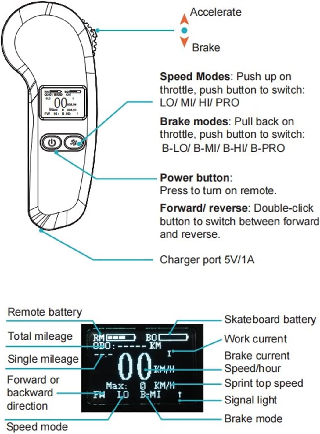 [VISUALIZZAZIONE DATI DETTAGLIATI]: Lo schermo LED fornisce informazioni complete come potenza dello scooter, chilometraggio totale e velocità. [Design scientifico]: il design a guscio curvo lungo e l'acceleratore del pollice offrono comfort e controllo preciso. [Controllo versatile]: un telecomando completo con freno regolabili e registrazione dei dati per una facile navigazione. [Tre modalità di velocità]: goditi tre modalità di velocità e un motore di vibrazione incorporato per un'esperienza personalizzabile. [Scelta popolare]: questo controller di skateboard elettrico premium è amato da bambini e adulti per la sua accelenza reattiva e la qualità di prim'ordine.