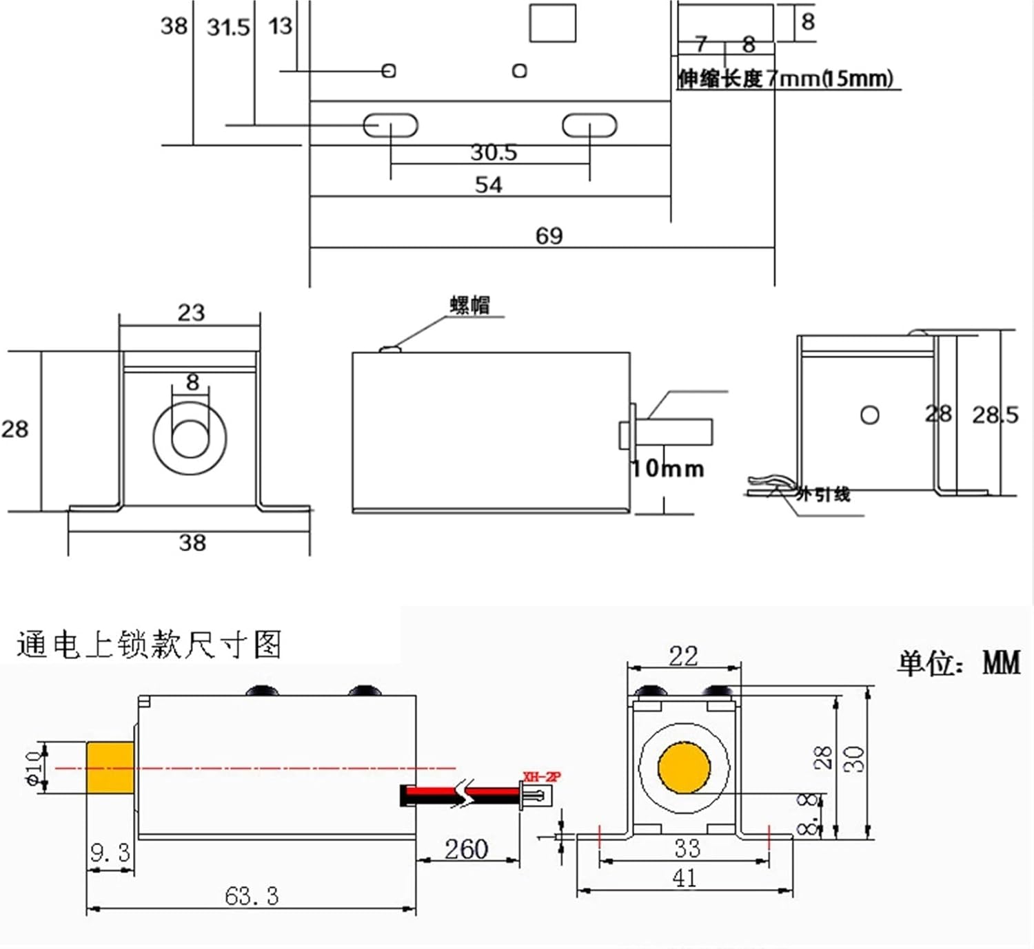 VOLTAGE COMPATIBILITY: Compatible with 12V and 24V power , applicable to a wide range of voltage environments to meet the needs of different devices and scenarios. EASY OPERATION: the lock cylinder automatically retracts when power is on and automatically pops up when power is off. COMPACT DESIGN: small electromagnetic push-pull lever design saves space and is suitable for installation in space-restricted areas.