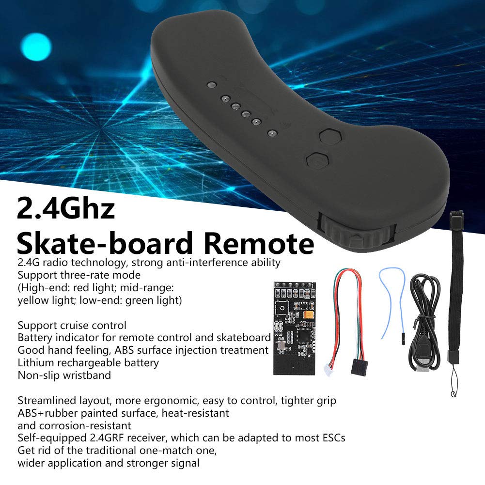 Questo telecomando da skateboard ha una tecnologia radio 2.4G, una forte capacità anti-interferenza, supporta la modalità a tre velocità e il cruise control e ha una spia della batteria, che si sente bene, trattamento di iniezione superficiale ABS, ricarica elettronica al litio Il telecomando per skateboard è dotato di un ricevitore 2.4GRF, che può essere adattato alla maggior parte degli ESC, eliminando il tradizionale one-matching e ha un'applicazione più ampia e un segnale potente. Questo telecomando per skateboard ha una modalità di crociera a velocità costante, quindi non devi preoccuparti dell'affaticamento della pressione prolungata e risolvere la velocità irregolare. Il telecomando elettrico dello skate-board può essere utilizzato ininterrottamente per più di 4 ore; si spegnerà automaticamente dopo uno standby a lungo termine; ricorderà la vibrazione della batteria scarica. Questo telecomando elettrico per skateboard ha un layout semplificato, più ergonomico, facile da controllare e più stretto.