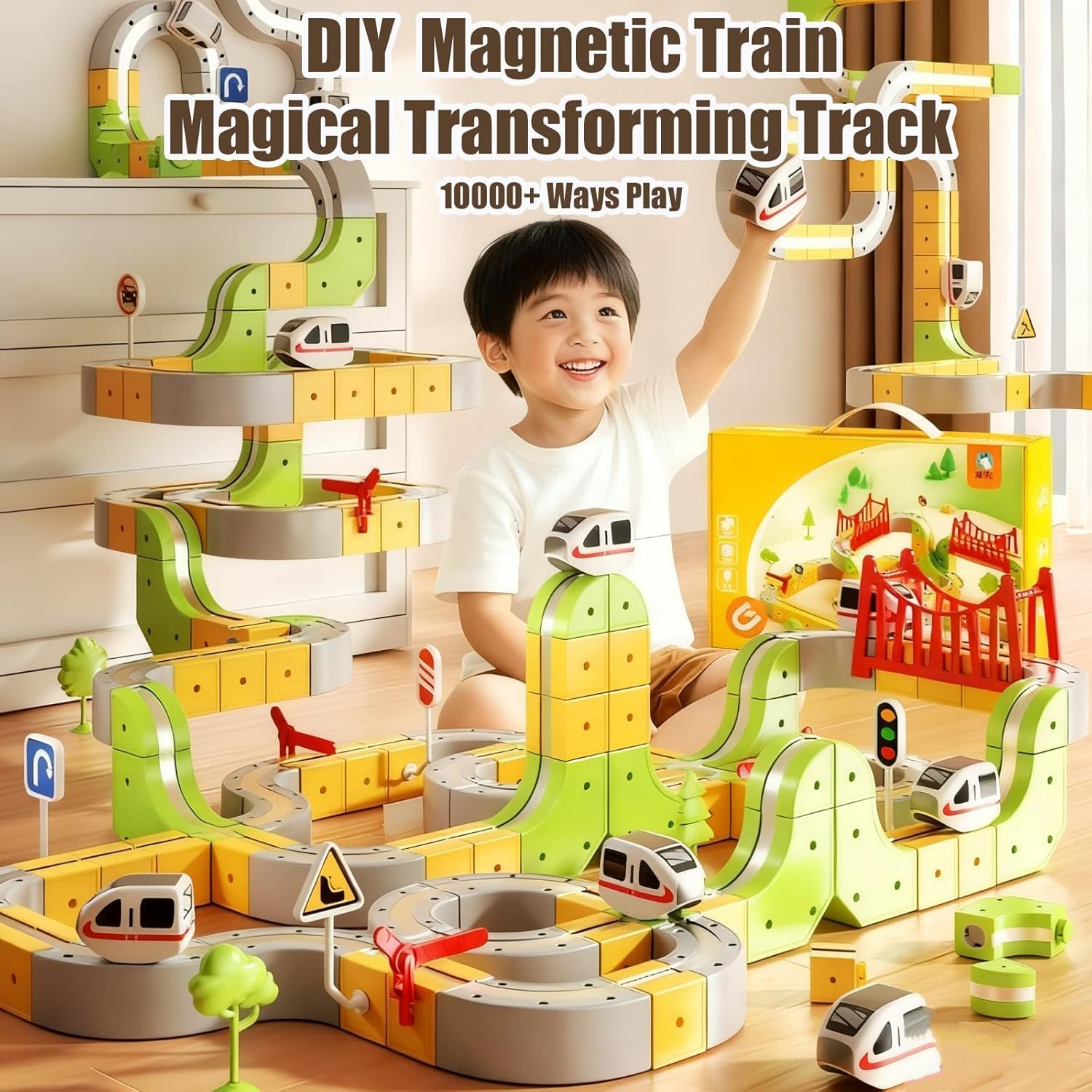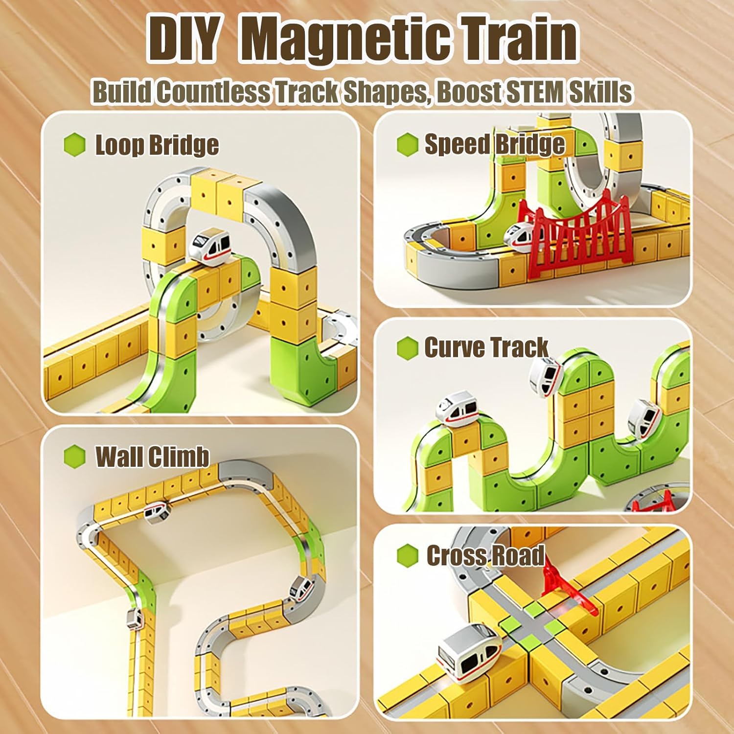 Design modulare 3D con clip: i cubi colorati si collegano in modo sicuro, consentendo ai bambini di costruire piste da corsa flessibili con salite verticali, curve, ponti e curve Treno che sfida la gravità: il treno motorizzato corre in salita, gira a 360°, si sposta lateralmente e si appende persino a testa in giù per un emozionante gioco antigravità Valore di apprendimento STEM: sviluppa il ragionamento spaziale, le capacità di risoluzione dei problemi e la creatività mentre i bambini progettano e costruiscono i propri tracciati unici Montaggio semplice e sicuro: realizzati in materiale privo di BPA con bordi lisci e arrotondati, i pezzi della pista si bloccano saldamente per corse senza interruzioni Regalo meraviglioso: include un treno che percorre ogni binario. Set da gioco divertente ed educativo per compleanni o vacanze, ideale per ragazzi e ragazze dai 3 agli 8 anni