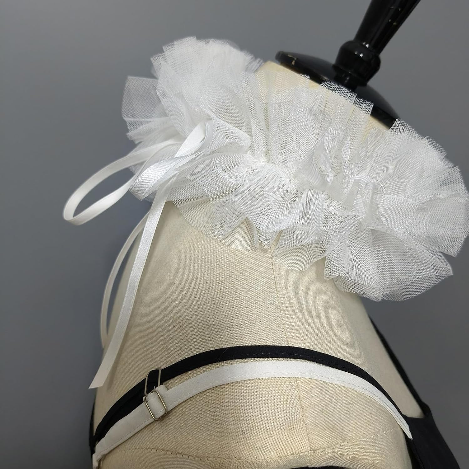 Elegante collo in rete e polsini da polso per costume medievale increspato finto collare collane girocollo