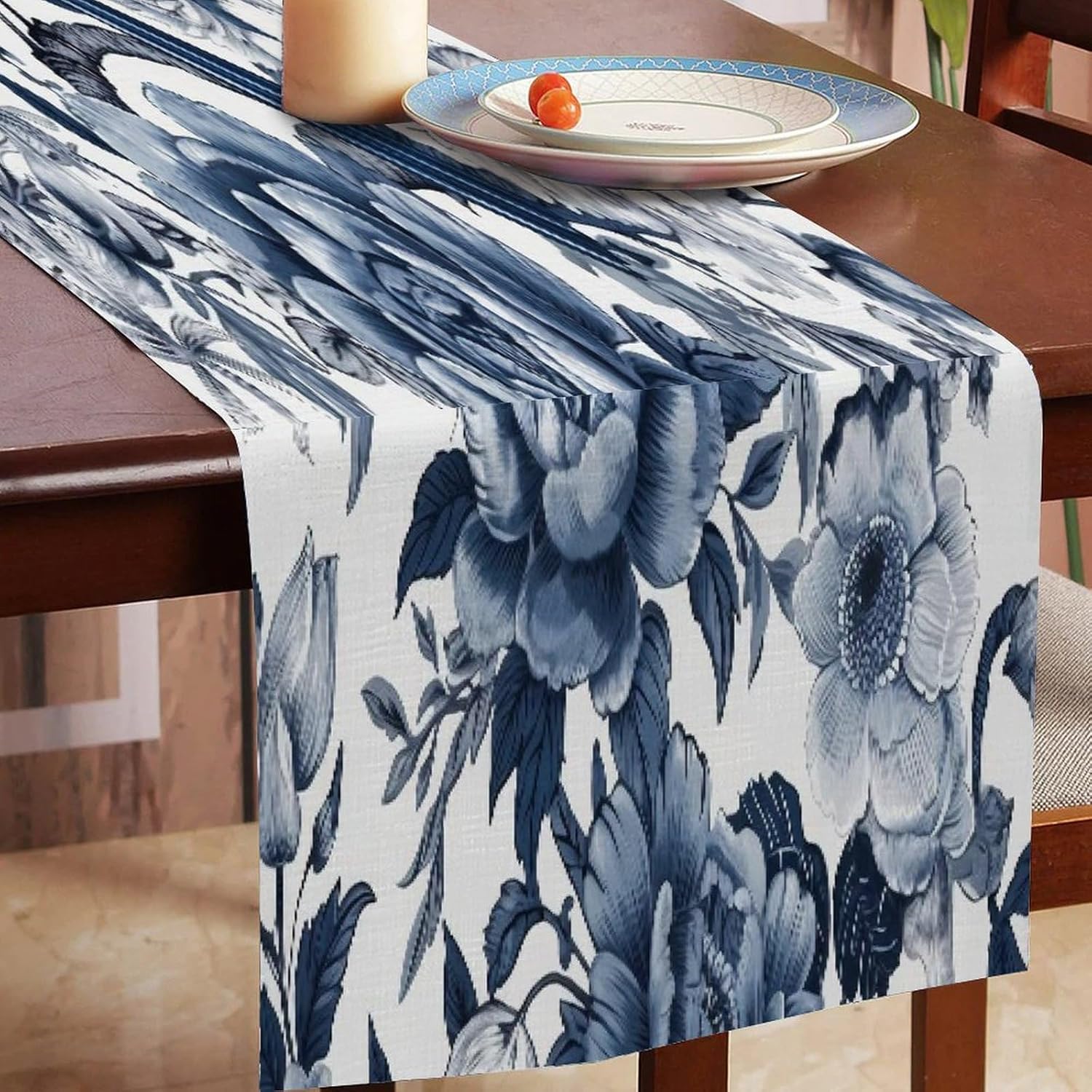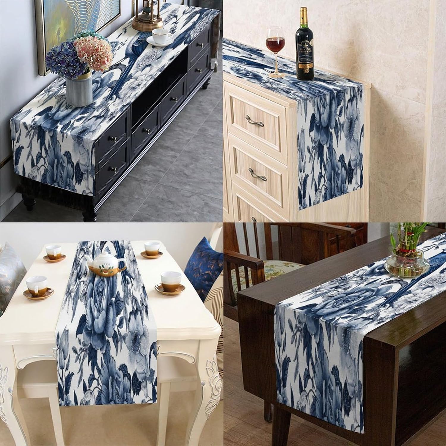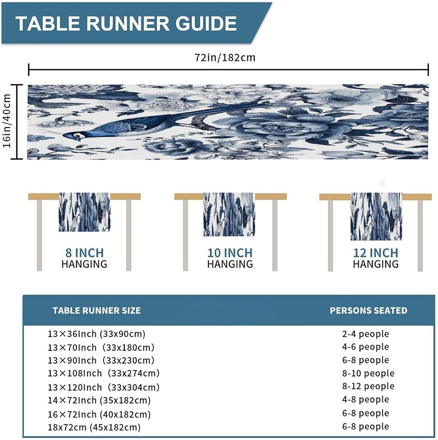 Elegante runner da tavola in cotone e lino, con gazza e peonie, 40 x 183 cm, runner da tavolo per sala da pranzo, vacanze, decorazione per la casa, giardino, matrimoni, ricevimenti