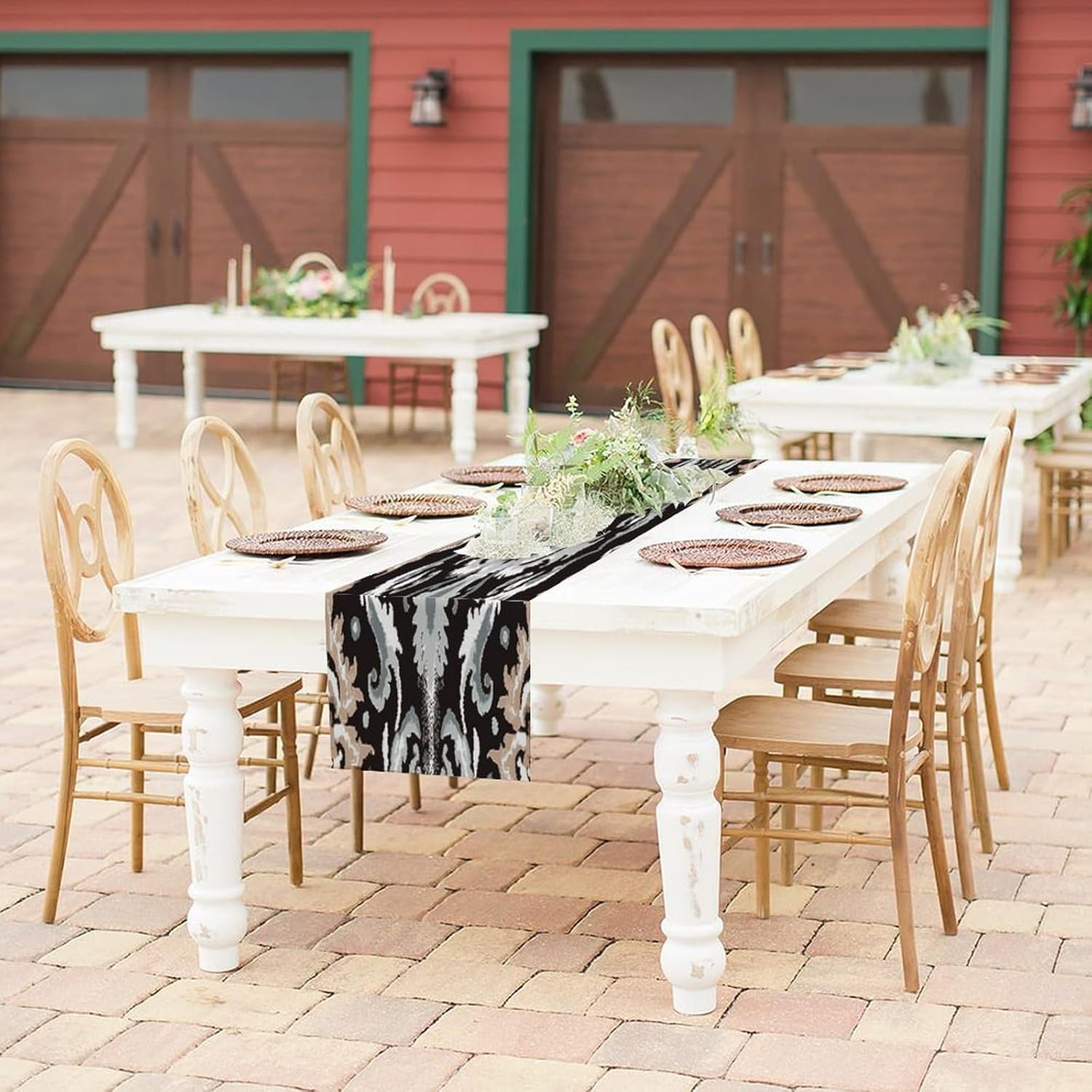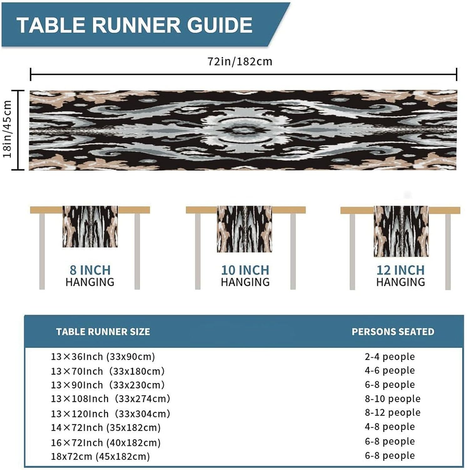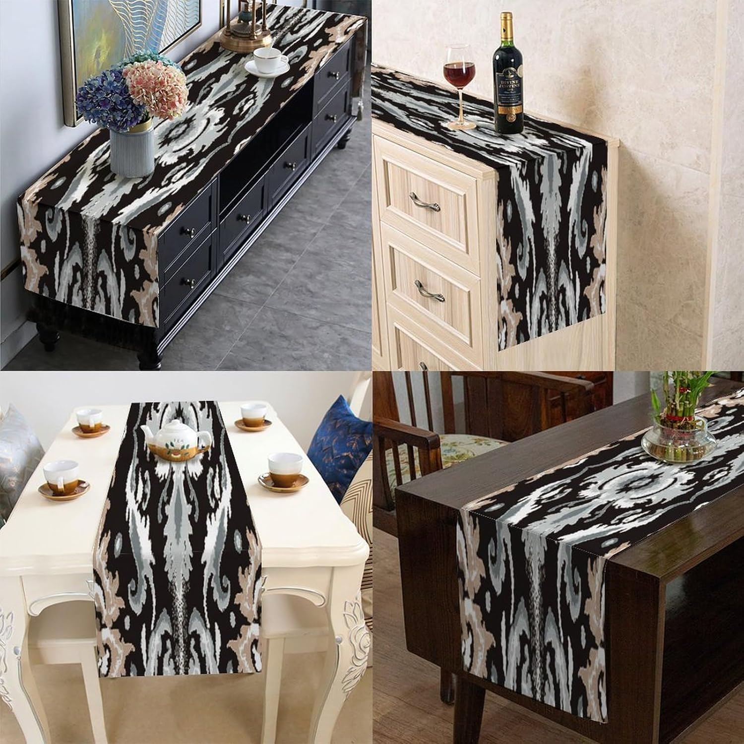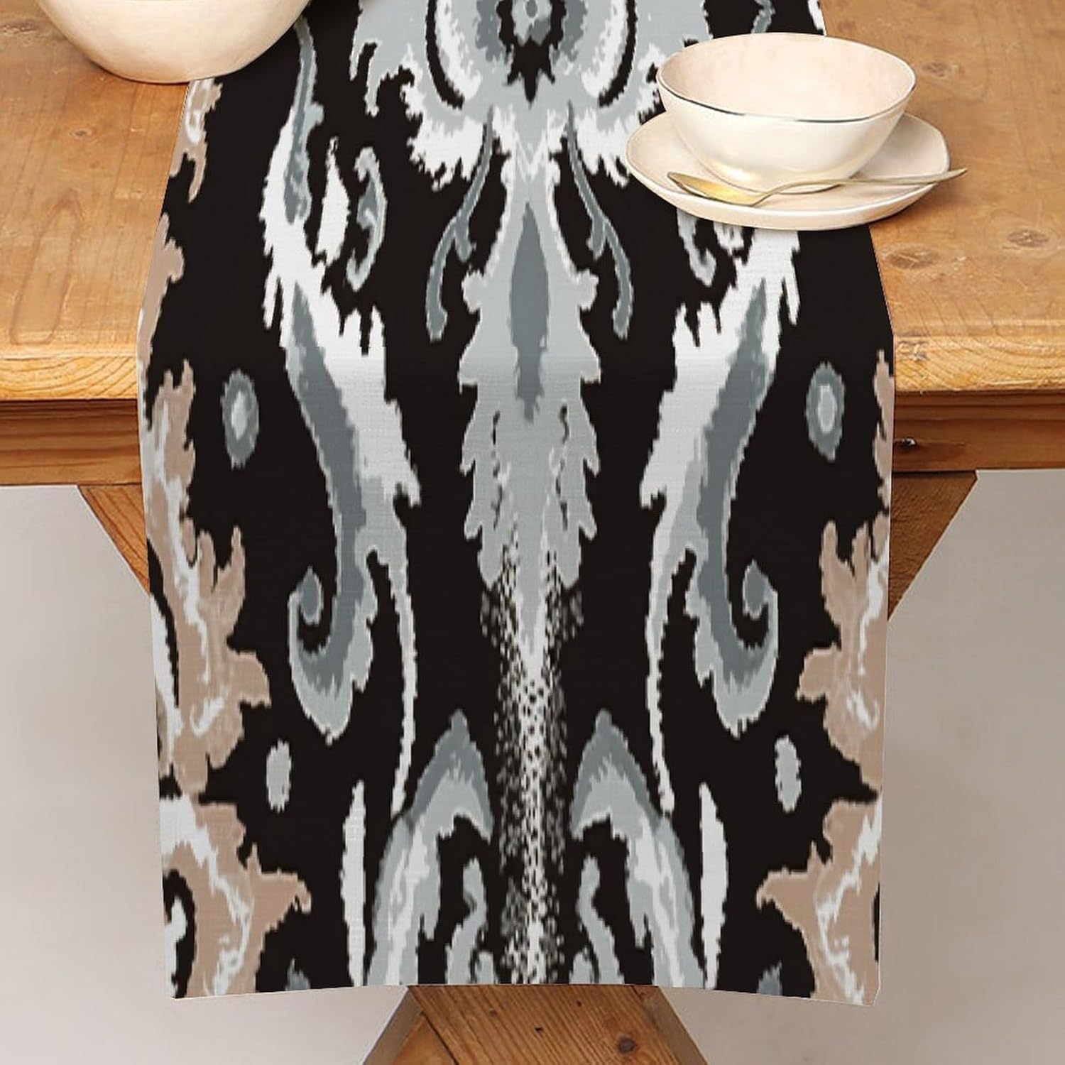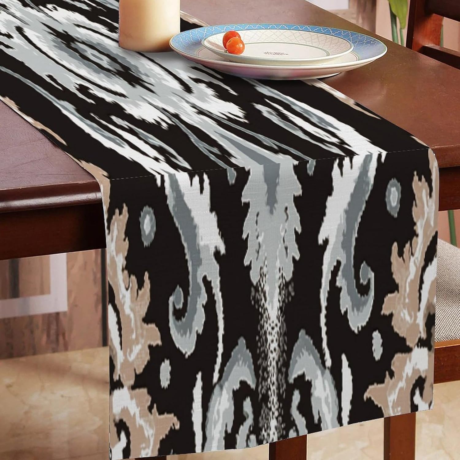 Elegante runner da tavola in cotone e lino Ikat, colore nero e marrone, 45 x 198 cm, per sala da pranzo, vacanze, decorazione per la casa, giardino, matrimoni, ricevimenti