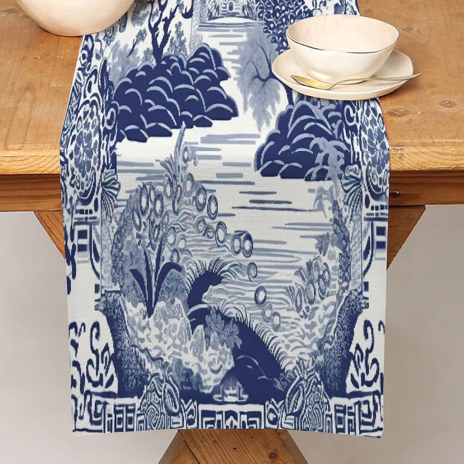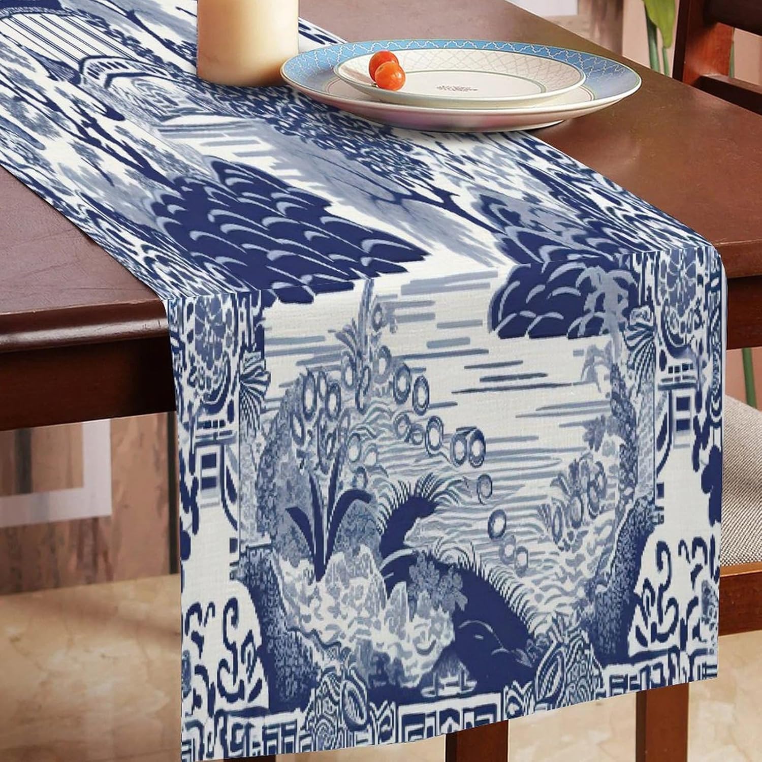 Elegante runner da tavola in cotone e lino, per sala da pranzo, vacanze, decorazione per giardino, matrimoni, ricevimenti, 33 x 320 cm