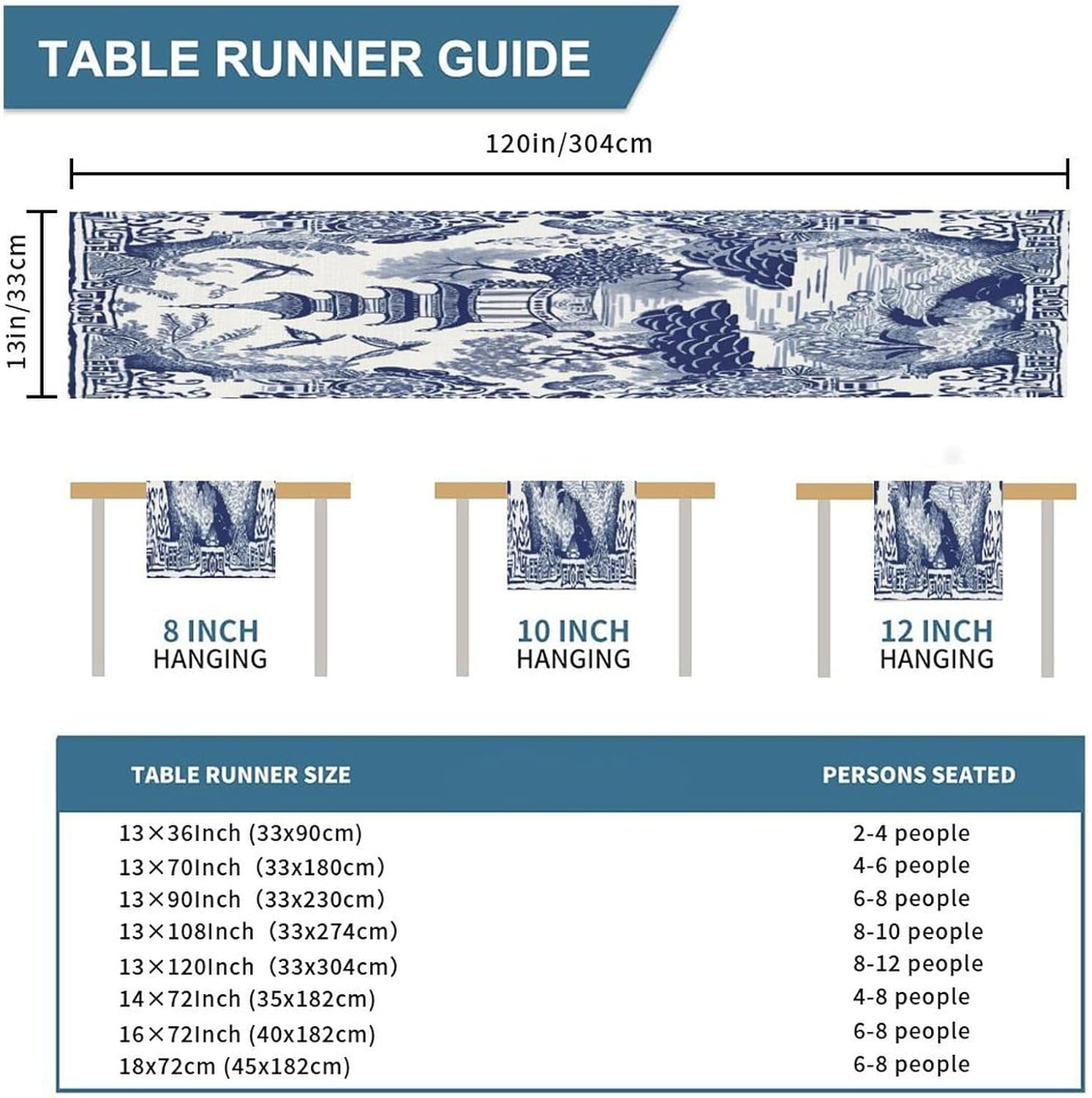 Dimensioni: 304 x 33 cm. Materiale: realizzato in morbido lino di cotone, comodo e durevole, resistente all'usura. Protegge la superficie del tavolo per la decorazione quotidiana della tavola, proteggendo la superficie del tavolo da pentole calde, graffi, danni causati dal calore. [Grande decorazione]: i runner da tavola sono un modo veloce, facile ed economico per aggiornare il tavolo della sala da pranzo, la camera da letto, il comò. Sarà il tuo compagno perfetto per colazione, pranzo e cena. Questa tovaglia dal design elegante aumenterà il fascino del tavolo da pranzo. [Uso multiuso]: alla ricerca di un runner da tavola per più occasioni? Non cercare più! Questo runner da tavola può andare dal ringraziamento alla festa di Natale ed è ottimo anche per una serata estiva informale. Sarà anche un regalo perfetto per i tuoi cari per l'inaugurazione della casa, il Ringraziamento o Natale. Ampia applicazione: caratterizzato da un motivo elegante con un bel bordo con nappe, sembra bello e vintage. Adatto per l'uso quotidiano, balli, matrimoni, feste o qualsiasi vacanza speciale. Ideale per uso interno ed esterno, come cucina, giardino, tè pomeridiano, caffè, cene, balcone, potlucks.