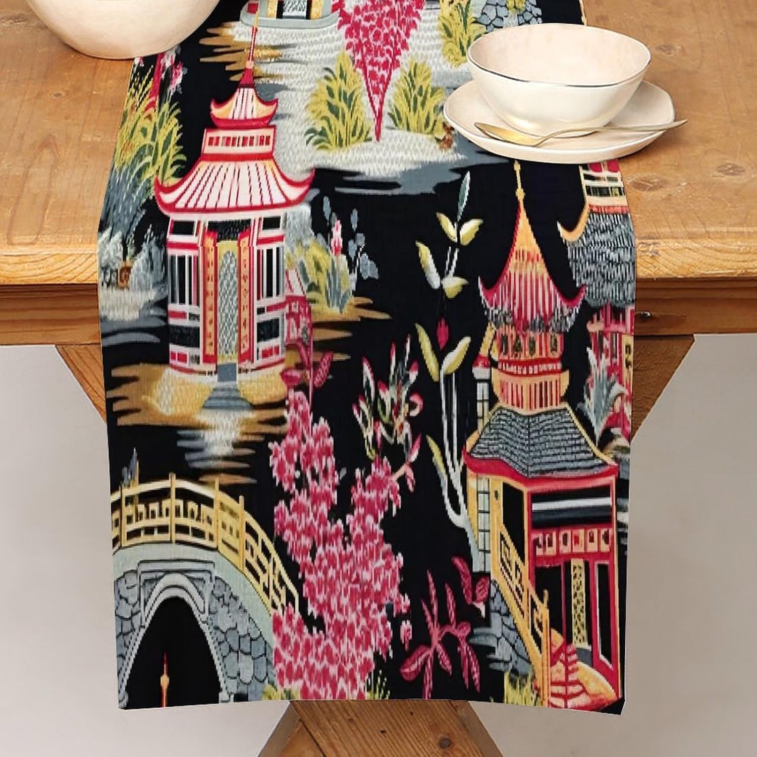 Elegante runner da tavola in cotone e lino, stile pagoda, color carbone, corallo, 33 x 36 cm, per sala da pranzo, vacanze, decorazione per la casa, giardino, matrimoni, ricevimenti