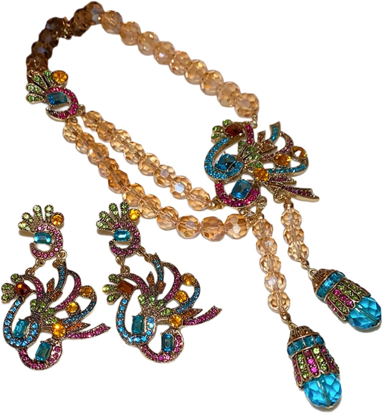 Elegante set gioielli con pavoni che comprende collana e orecchini dai colori vivaci e un ago comodo da indossare Caratteristiche: Questo set presenta colorata collana con pendente Pavoni e orecchini ago in argento decorati con che simboleggiano la buona fortuna. Realizzato in lega, e perle vetro, set vanta colori vivaci e lunga durata e un ago comodo per un uso confortevole. Per le donne alla che apprezzano design unici e stili eleganti, soprattutto quelle che cercano gioielli straordinari. Per le occasioni formali come cene, feste e matrimoni, questo set funge anche da accessorio per outfit tutti i giorni. Eleva i tuoi completi con questo set gioielli meticolosamente realizzato, progettato per migliorare tuo complesso. Specifiche: Componente: lega, perle vetro Colore: come da immagine Dimensioni: collana 51,4+5,5 cm/20,24+2,17 pollici, orecchini 6,6x3,5 cm/2,6x1,38 pollici La confezione include: Set collana e orecchini con pavoni da 1 pezzo Nota: 1.Si prega consentire errori 1-2 cm dovuti alla misurazione manuale, assicurandosi che non ti dispiaccia prima ordinare. 2.A causa delle differenze tra i diversi monitor, l'immagine potrebbe non riflettere colore reale.