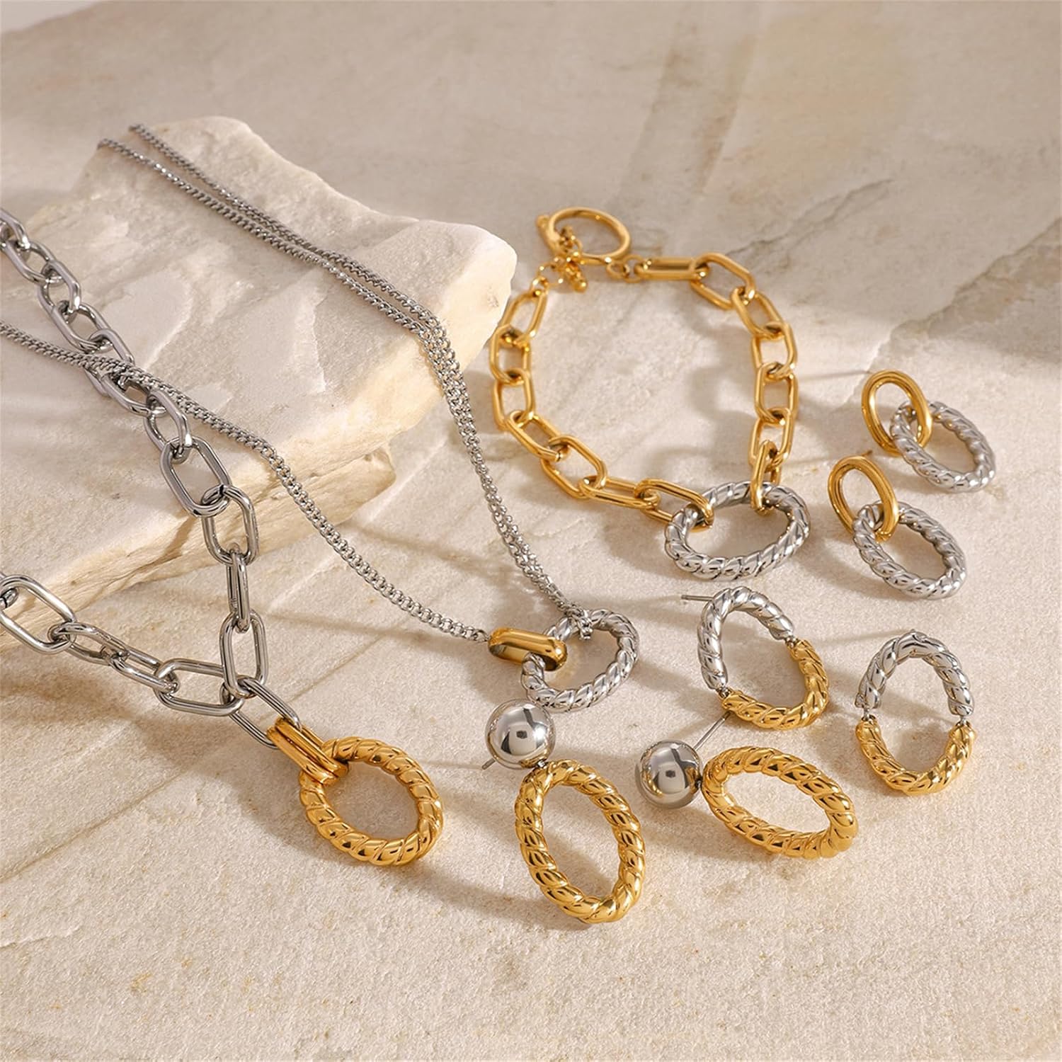 Elegante set gioielli in acciaio inossidabile con motivi a strisce comprende collana, orecchini e braccialetto Caratteristiche: Realizzato in acciaio inossidabile, set gioielli è portatile e robusto, garantendo un uso prolungato e lunga durata per l'uso quotidiano. Caratterizzato da disegni geometrici minimalisti con strisce questo set gioielli è stesso elegante e versatile, superfici integrate per un uso confortevole. Per le donne alla che apprezzano stili personalizzati, questo set valorizza qualsiasi guardaroba con suo fascino unico. Per spostamenti quotidiani, le riunioni informali e le occasioni formali, questo set gioielli aggiunge un fascino distintivo tuo abbigliamento, rendendolo adatto a vari ambienti. Migliora la tua collezione accessori con questo set gioielli impermeabile, progettato per resistere all'accessorio mantenendo suo aspetto elegante, rendendolo un'aggiunta ai tuoi completi. Specifiche: Componente: acciaio inossidabile Tipo: come immagine mostra, otto tipi tra cui scegliere Dimensioni: lunghezza catena 40+5 cm/15,75+1,97 pollici, 45+5 cm/17,72+1,97 pollici La confezione include: Collana con pendente rotondo da 1 pezzo Nota: 1.Si prega consentire errori 1-2 cm dovuti alla misurazione manuale, assicurandosi che non ti dispiaccia prima ordinare. 2.A causa delle differenze tra i diversi monitor, l'immagine potrebbe non riflettere colore reale.