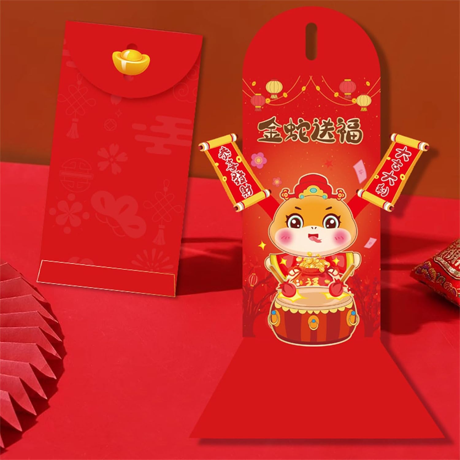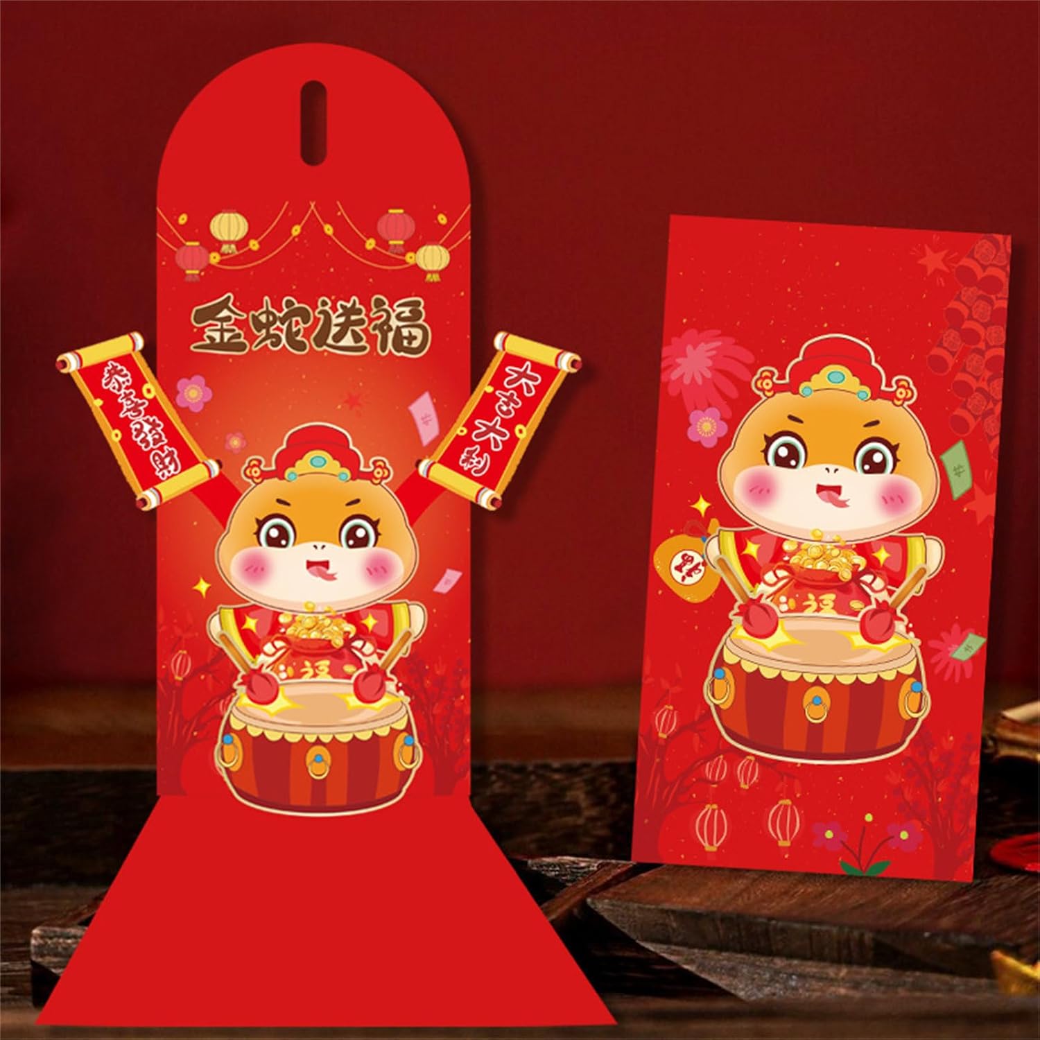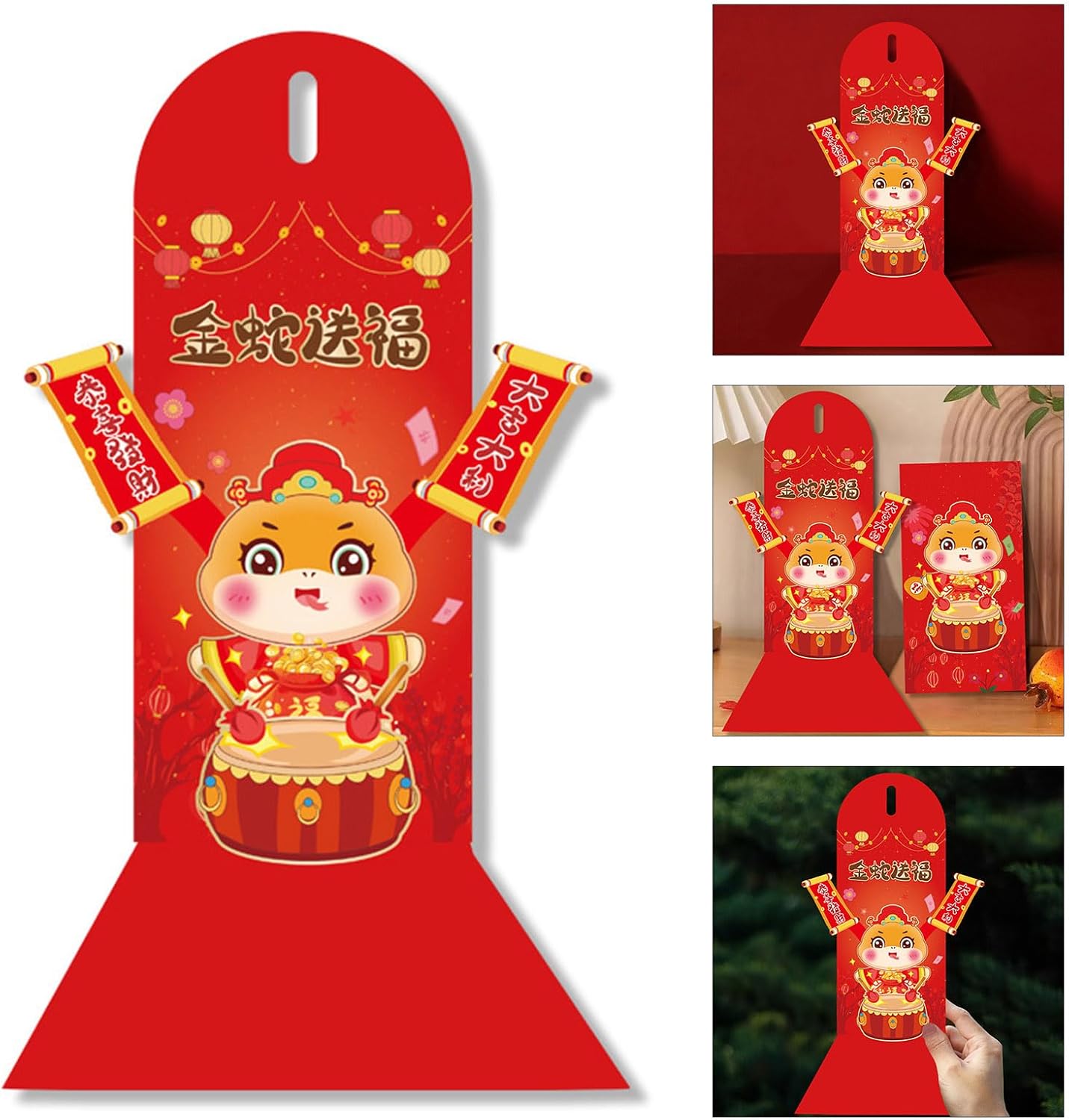 Queste buste, realizzate in carta resistente, presentano un colore brillante e intricate grazie alla stampa intuitiva e alle tecniche 3D avanzate. Migliora il tuo regalo, queste delicate buste di denaro che servono sia gesto e pezzi decorativi per ogni occasione. Festeggia il 2025 Anno del Serpente con le nostre buste popup 3D dal design unico, simboleggiano la felicità e aggiungono un'atmosfera festiva alla festa di Capodanno. Adatto a diverse età, in particolare per i consumatori, cercano design individuali e creativi e rendono perfetti per coloro che apprezzano le forniture di feste uniche. Perfette per gli auguri di Capodanno cinese, le riunioni familiari e gli eventi aziendali, queste buste sono un ottimo modo per trasmettere benedizioni e richieste di consegna.