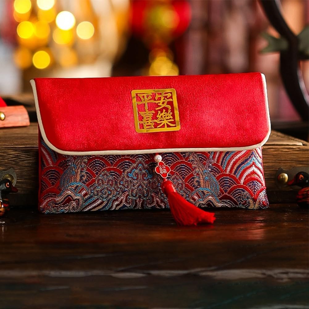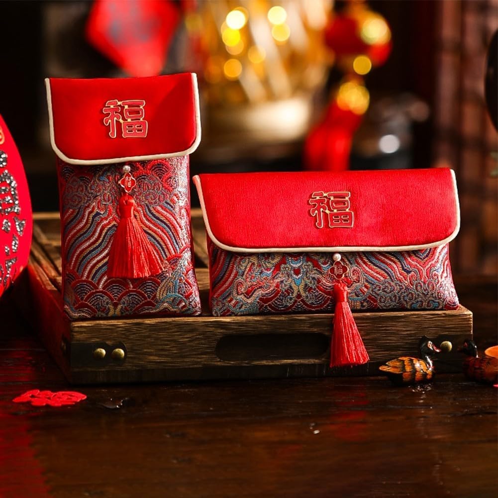 [Splendide buste rosse in tessuto] Realizzate con tessuti robusti, queste eleganti buste rosse sono per migliorare le tue occasioni speciali con un tocco di lusso. Splendidamente progettati per le feste: con intricati motivi stampati in oro e deliziose nappe rosse, questi pacchetti non solo celebrano la tradizione, ma aggiungono anche raffinatezza ai tuoi eventi. [Quattro stili unici inclusi] Questo set offre quattro diversi disegni tra cui scegliere, permettendoti di abbinare la busta al tuo stile unico o alla natura della tua celebrazione. [TRADIZIONE CULTURALE ABBRACCIATA] Dare pacchetti rossi è una tradizione consacrata nel tempo che incarna gioia e prosperità, rendendola parte integrante delle celebrazioni natalizie.
