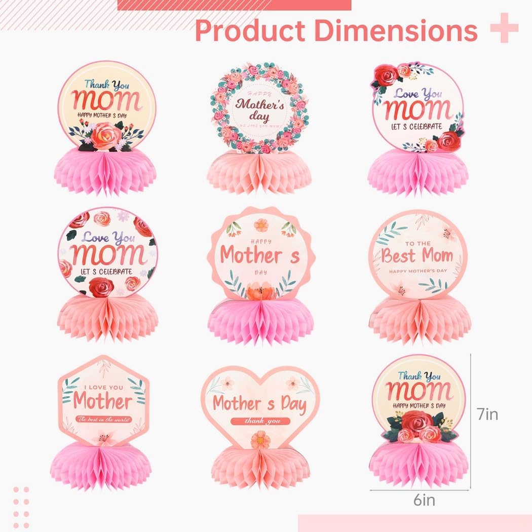 Set completo per la festa della mamma: viene fornito con nove centrotavola a tema; progettato con motivi simbolici; ognuno presenta una superficie bifacciale Accento premuroso per la festa: tavolozza di colori rosso-rosa; bella grafica; aggiunge calore e stile a una celebrazione speciale Design di installazione istantanea: punti adesivi pre-incollati; basta regolare la base e premere; costruzione intuitiva per un'installazione rapida Stampa solida e nitida: cartone con superficie protettiva; stampa a colori avanzata; durevole per resistere alle pieghe durante la presentazione Decorazione flessibile: ideale per tavoli o mensole per feste; ingombro compatto; Può anche essere appeso con le tue clip per una maggiore varietà