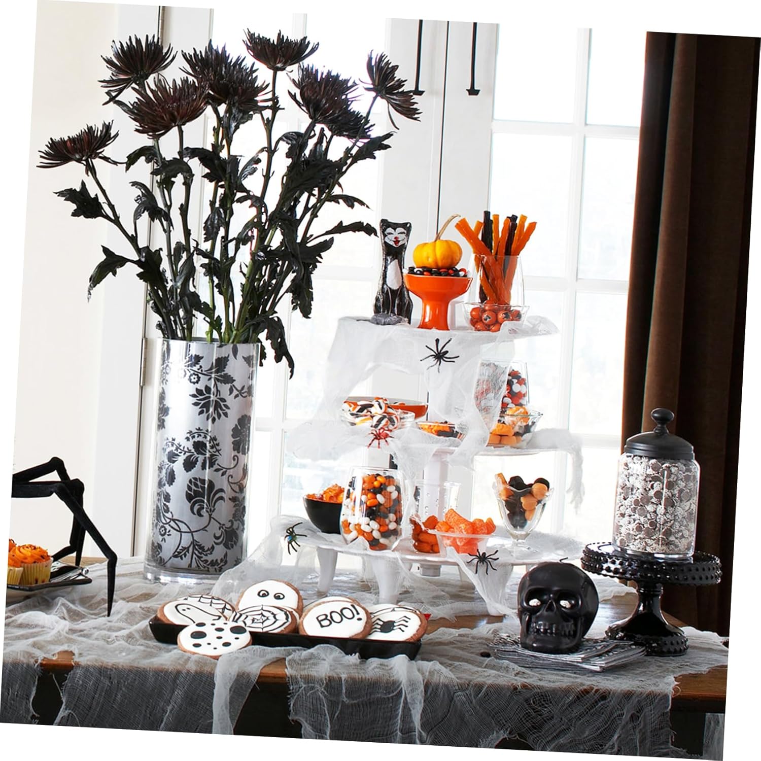 Scheletro decorativo di Halloween - Combinalo con teschi, decorazioni di ragnatele, luci di Halloween o altre decorazioni della casa stregata per deliziare e spaventare i tuoi ospiti, Decorazione animata per porta di Halloween in pla - Ottimo per decorare la tua casa infestata!, Garza grigia di Halloween - per case infestate, feste di Halloween e altre feste a tema spettrale, Oggetti di Halloween Panno nero spaventoso - crea un'atmosfera spettrale e spettrale per la tua festa di Halloween e decorazioni di Halloween Strega che si arrampica sugli alberi di Halloween - ideale per scene spaventose e foto cruente e immagini!, decorazione