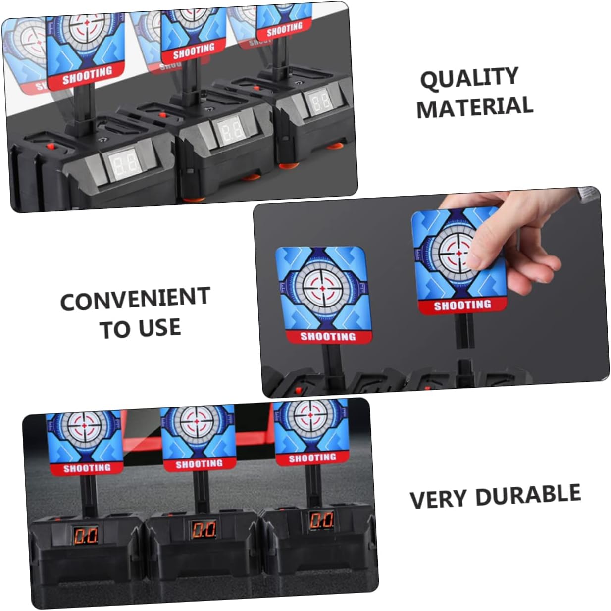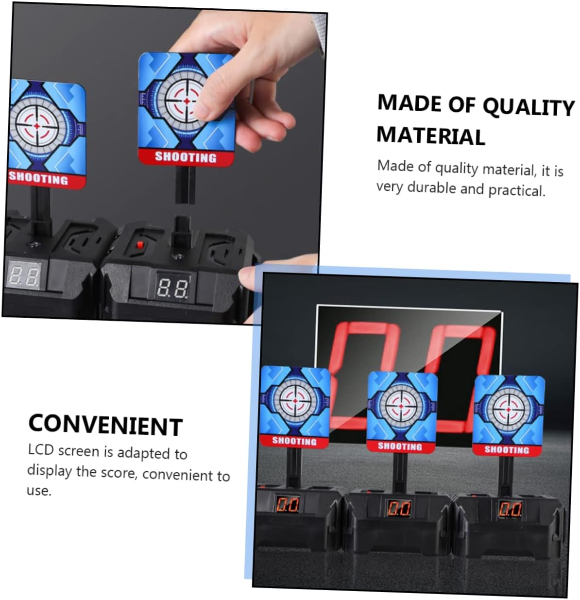 Non solo puoi divertirti ad allenarti, ma puoi anche migliorare tue abilità e la precisione, con punteggio automatico Elettrico da tiro, ripristino automatico, rimbalzo automatico, facile montaggio, bersagli da tiro Bersagli elettronici da tiro: realizzati con materiali prima qualità, sono pratici e si ripristinano automaticamente Elettronica puntamento: elettronica promuove la genitore-figlio e allena capacità dei , può essere un regalo fantastico per loro, elettronico punteggio Elettronico da tiro: realizzato con materiali qualità, è pratico e pratico, bersagli elettrici