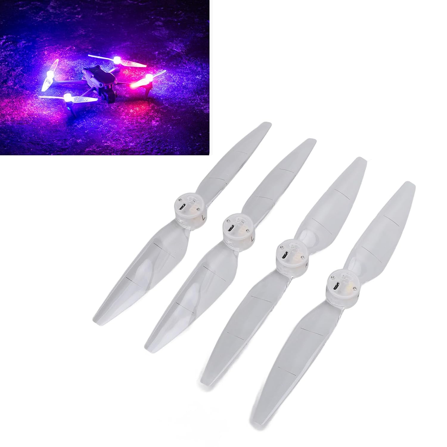 [Design professionale]: elevati voli notturni con splendidi effetti visivi e assicurati una navigazione notturna precisa con eliche a LED appositamente progettate per i droni della serie Air 3. [Effetti di illuminazione colorati]: goditi 3 modalità flash per immagini vibranti e compatibilità con tecniche di fotografia a lunghe esposizione, creando foto di impatto e migliorando il divertimento durante i voli notturni. [Batteria ricaricabile]: comoda batteria ricaricabile integrata con tempo di ricarica rapido di 0,5 ore, offrendo oltre 50 minuti di durata della batteria per un utilizzo esteso. [Materiale durevole]: realizzati con materiale PC trasparente, queste eliche sono leggere a 12,8 g ciascuna, garantendo stabilità e durata senza influire sulle prestazioni del drone. [Prestazioni aerodinamiche]: sperimentare un'eccellente prestazione di riduzione del rumore paragonabile alle eliche originali, garantendo un processo di volo stabile e jitter per un'esperienza di volo senza sforzo.