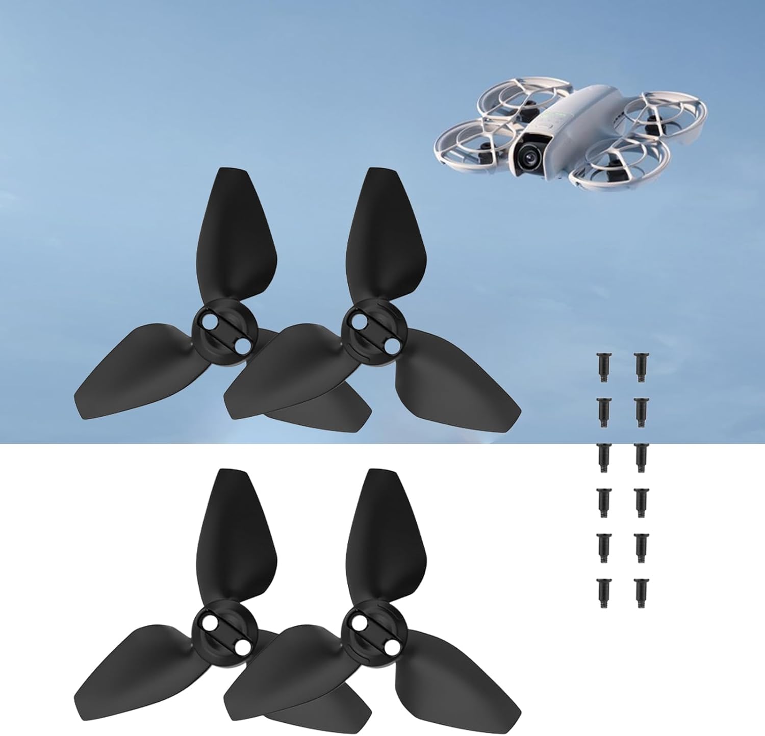 Dimensioni ridotte, volo stabile e bassa rumorosità. Leggero, buone prestazioni e durata. Dopo un preciso test di equilibrio, la rigidità fornisce una forte tensione all'aereo. Fornisce un volo più silenzioso e una potenza più potente e stabile. Design semplice, integrato con droni, armonioso e bello.