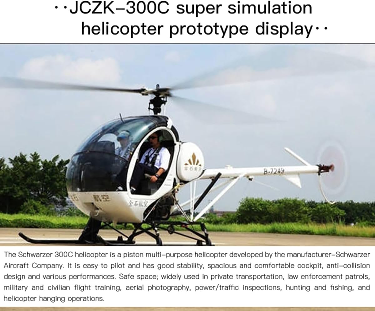 Design altamente realistico: realizzato con precisione per proporzioni realistiche, questo modello presenta una cabina di pilotaggio realistica con porte apribili, pannelli strumenti in scala, timone e acceleratore. Realizzato principalmente con materiali in lega con finiture anodizzate e sabbiate per una maggiore durata e autenticità. Controllo intelligente del volo: dotato di H1 Smart Flight Controller per il passaggio automatico, posizionamento GPS e funzioni one-touch ritorno a casa. Goditi funzionalità come il mantenimento automatico dell'altitudine, il ritorno a bassa tensione e il recupero della perdita di segnale, perfetto sia per i principianti che per i piloti esperti. Aerodinamica e stabilità migliorate: incorpora una testa a triplo rotore con design DFC flybarless per bassa gravità e resistenza ridotta, garantendo una maneggevolezza precisa, una maggiore efficienza energetica e una stabilità strutturale ottimizzata per ridurre i rischi di danno. Motore e componenti potenti: alimentato da un motore brushless professionale JCZK-470L che offre alta efficienza, uscita 1150 W e bassa generazione di calore. Accoppiato con un 60A V4 Platinum ESC e una robusta batteria 4S 30C da 4000 mAh per circa 10 minuti di volo e oltre 500 cicli di ricarica. Costruzione e accessori di alta qualità: dispone di carrello di atterraggio ammortizzato a molla per protezione dagli urti, servi ad alta pressione interamente in metallo per precisione e un sistema di luci di navigazione a LED. Include un telecomando universale AT9S PRO a 12 canali con display LCD e un caricabatterie intelligente IMAX B6AC da 80 W per una gestione rapida e affidabile dell'alimentazione.