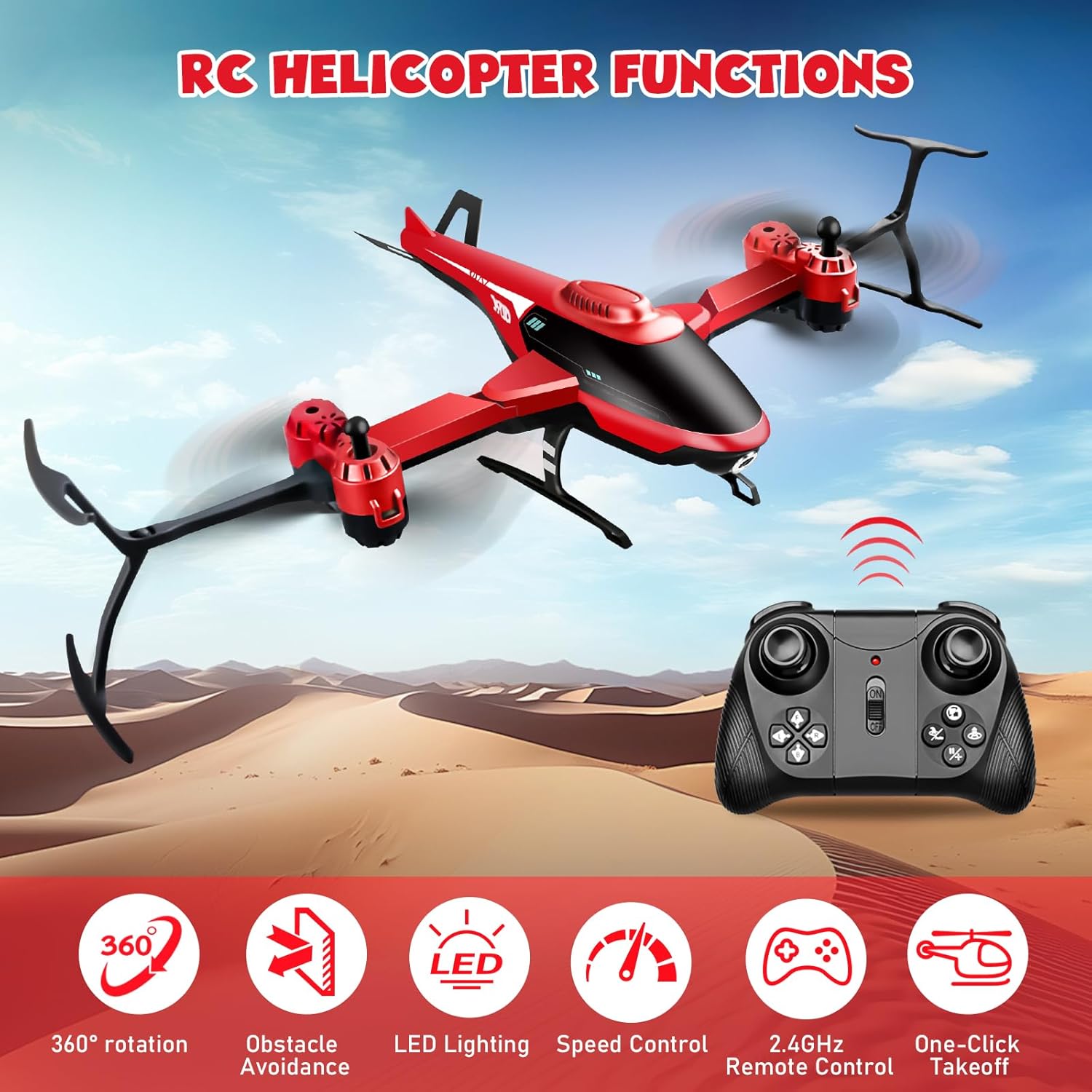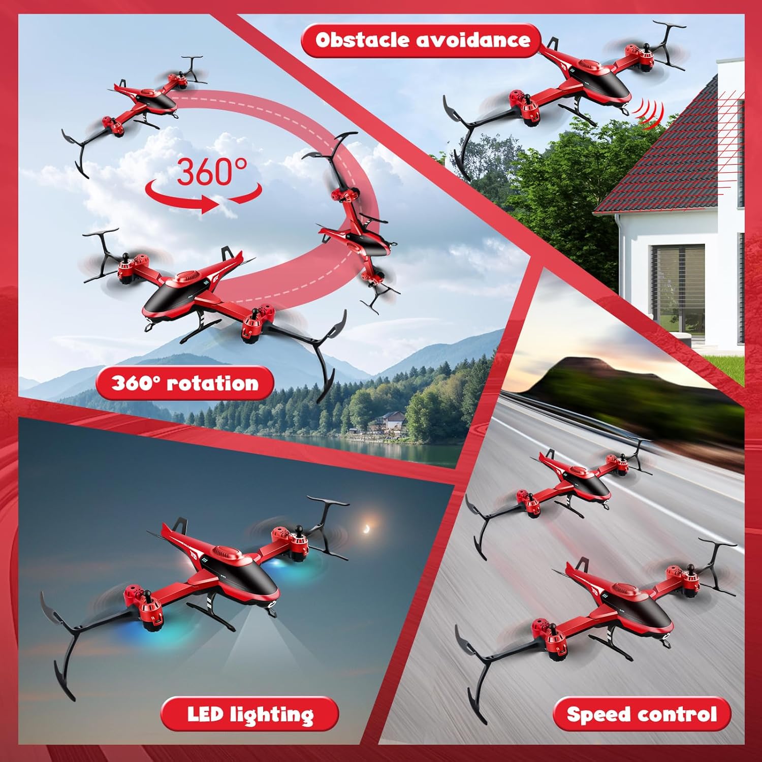 ✈✈【Il Piacere Di Volare Nei Cieli】Progettato appositamente per i piccoli piloti, questo aeroplano telecomandato pieghevole offre prestazioni acrobatiche sorprendenti: è in grado di eseguire con facilità voli circolari perfetti, emozionanti capriole a 360° in aria, blocco intelligente dell'altezza, commutazione libera tra velocità alta e bassa e molte altre funzioni. Sia che si tratti di manovre di volo di base (rollio a destra e a sinistra, avanzamento e arretramento, planata laterale) o di acrobazie notturne, questo aeroplano offrirà un'esperienza di volo senza precedenti. 🚩🚩【Acrobazie A 360°】Tecnologia di acrobazia matura, con un solo clic è possibile eseguire facilmente un giro completo di 360 gradi in aria, decollare e atterrare con un solo clic. Funzione di hovering, che permette di fluttuare stabilmente in aria. Il volo ha 3 velocità regolabili, da scegliere in base al livello di abilità. Carrello di atterraggio resistente alle cadute, copertura di protezione di sicurezza, pale altamente resistenti al vento, che consentono anche ai principianti di padroneggiare rapidamente le tecniche di volo. ✨✨【Facile Da Usare】Nuovo modello aggiornato di aeromodello telecomandato pieghevole, con corpo pieghevole portatile, facile da riporre quando non viene utilizzato. Sistema di controllo remoto ad alta frequenza a 2,4 GHz, con segnale stabile e potente, lunga durata della batteria, per garantire un volo fluido e stabile ogni volta, con una distanza di volo fino a 150 metri. Il set include un manuale dettagliato con istruzioni per l'uso, che consente di sbloccare facilmente ulteriori funzioni nascoste. ✅✅【Alta Qualità】Realizzato in materiale ABS di alta qualità, estremamente resistente agli urti, leggero, durevole e di facile manutenzione, garantisce un volo fluido e senza ostacoli. Dotato di luci LED colorate per il volo notturno e di un design anti-smarrimento per una maggiore tranquillità. Dotato di 2 batterie a ricarica rapida (60 minuti per la ricarica completa/20 minuti di autonomia), il telecomando richiede 3 batterie AAA (non incluse). 🎁🎁【Regalo Ideale】Questo aeroplano telecomandato è il regalo perfetto per i piccoli appassionati di aviazione. Dotato di una batteria ricaricabile al litio ad alte prestazioni, garantisce una lunga autonomia e può essere ricaricato più volte, offrendo un divertimento senza fine. Che sia un regalo di compleanno, una sorpresa di Natale o un dono di Capodanno, questo aeroplano accenderà sicuramente i sogni dei bambini!