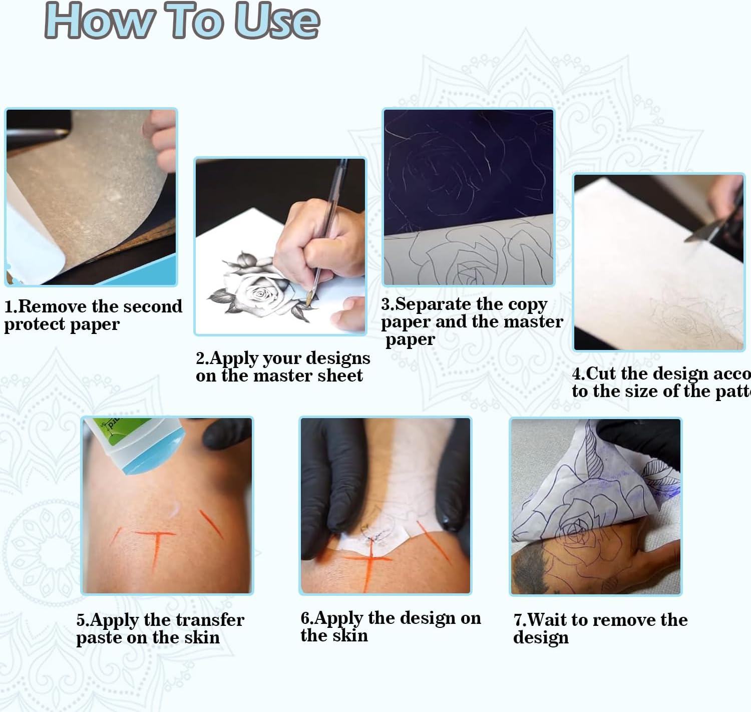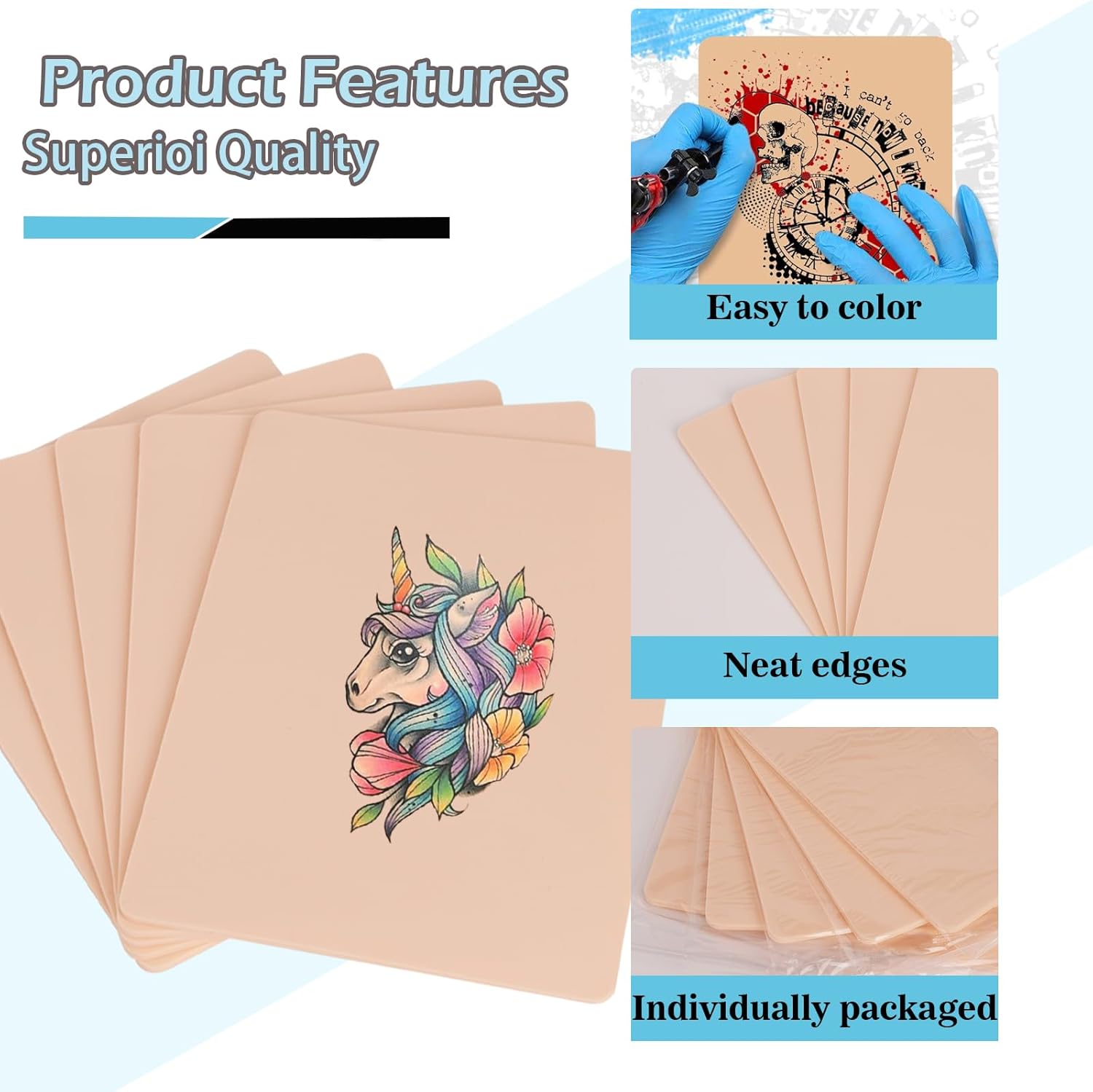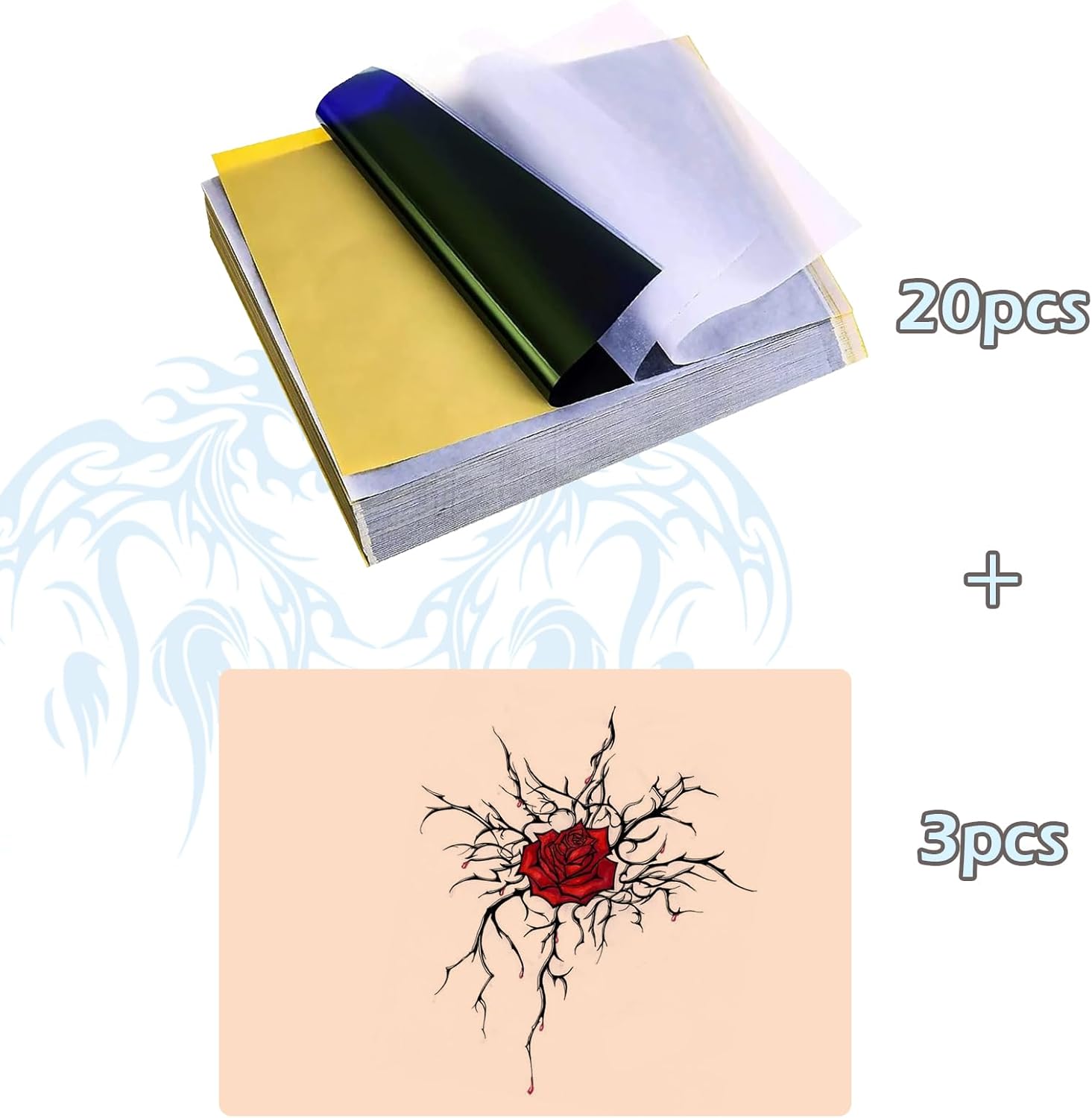 √ Carta per trasferimento tatuaggi: 20 pezzi di carta per trasferimento tatuaggi, 29,5 x 20,8 cm. Questa carta per stencil è realizzata con coloranti e carta cerata di alta qualità ed è perfetta per la pratica del tatuaggio. √ Pelle finta tatuaggio: 3 pezzi 20,3 x 15,2 cm ispessito finta pelle, ogni 3 mm di spessore. Queste pelli finte per tatuaggi sono realizzate in silicone sintetico di alta qualità, simile alla pelle, flessibile, sono morbide e riutilizzabili. √ DUE UTILIZZO: la carta di trasferimento del tatuaggio è molto compatibile con fotocopiatrici termiche o stampanti ad ago. Un'altra opzione è disegnare il disegno originale desiderato direttamente sulla carta. √ Kit di tatuaggi economici: la pelle finta e la carta per tatuaggi sono essenziali per tatuatori e principianti per lavorare o fare pratica. Acquistando questo set risparmierete tempo. √ Servizio clienti: ci impegniamo a produrre pelle di alta qualità per la pratica del tatuaggio e carta di trasferimento. Se avete domande, vi preghiamo di contattarci e inviarci un'e-mail in tempo. Risolveremo i tuoi problemi entro 24 ore.