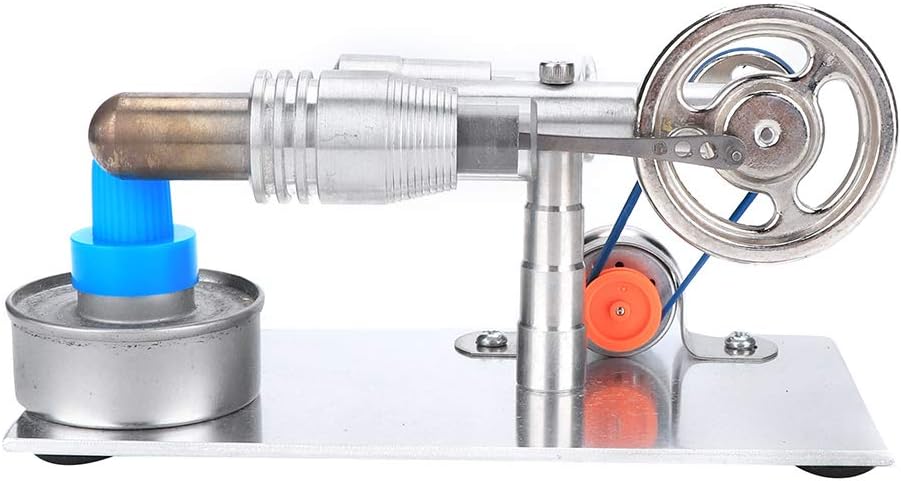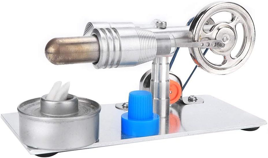 Motore Stirling ad aria calda: funziona attraverso la compressione ciclica e l'espansione dell'aria a diversi livelli di temperatura, convertendo così l'energia termica in lavoro meccanico. Generatore multicolore a LED: alimentato da alcol di alta qualità, genera elettricità per illuminare con luci a LED multicolore, offrendo un'esperienza visiva unica. Realizzato in acciaio inossidabile di alta qualità: l'esclusivo design e la lavorazione CNC con trattamento di sabbiatura conferiscono al motore un aspetto esquisito e resistente. Bruciatore ad alcool: con una semplice operazione e una lunga durata, il bruciatore ad alcool brucia il cilindro circolare per circa 60-100 secondi. Esperienza pratica: osserva l'intero processo di funzionamento del motore Stirling, approfondendo la comprensione del principio di funzionamento e stimolando l'interesse per la fisica.