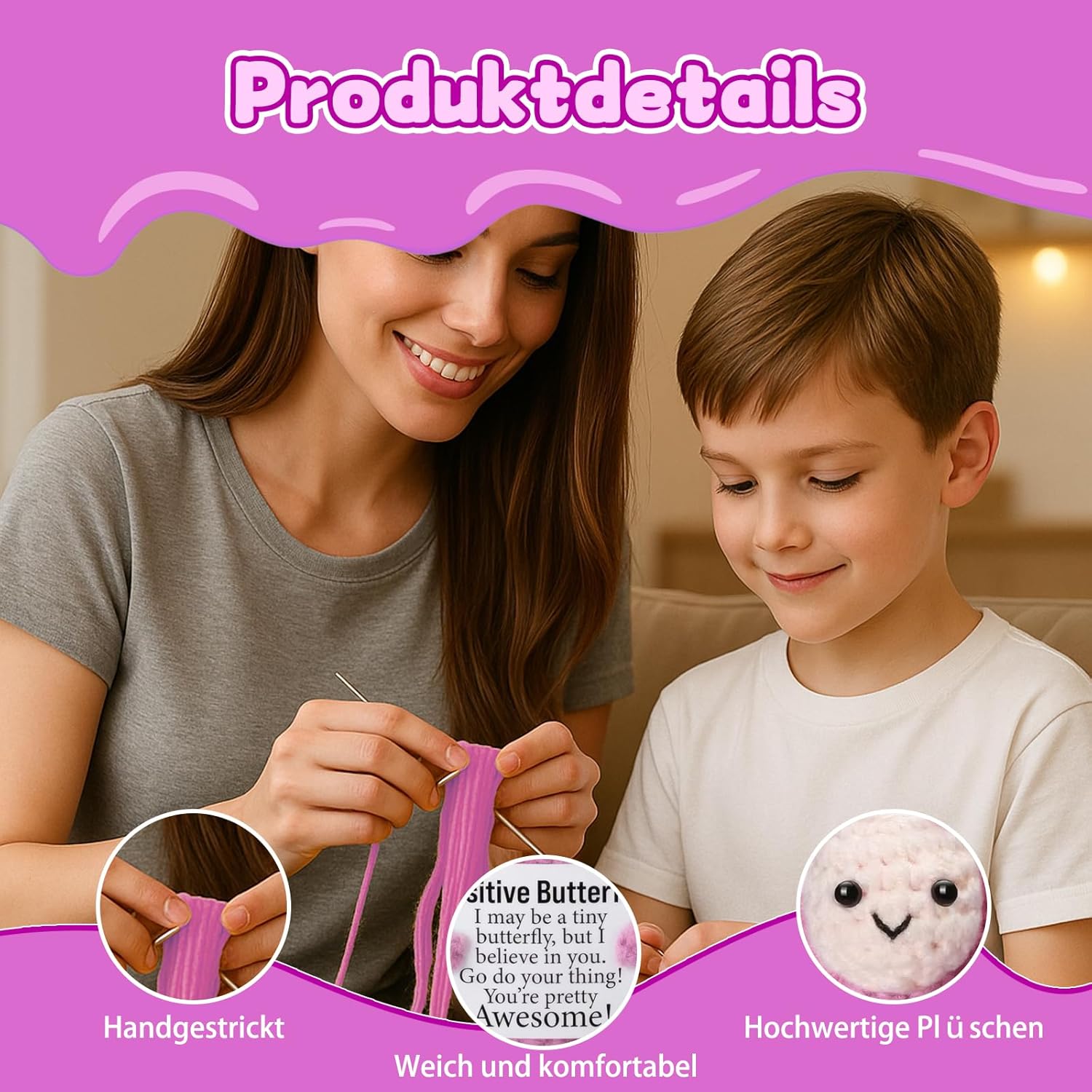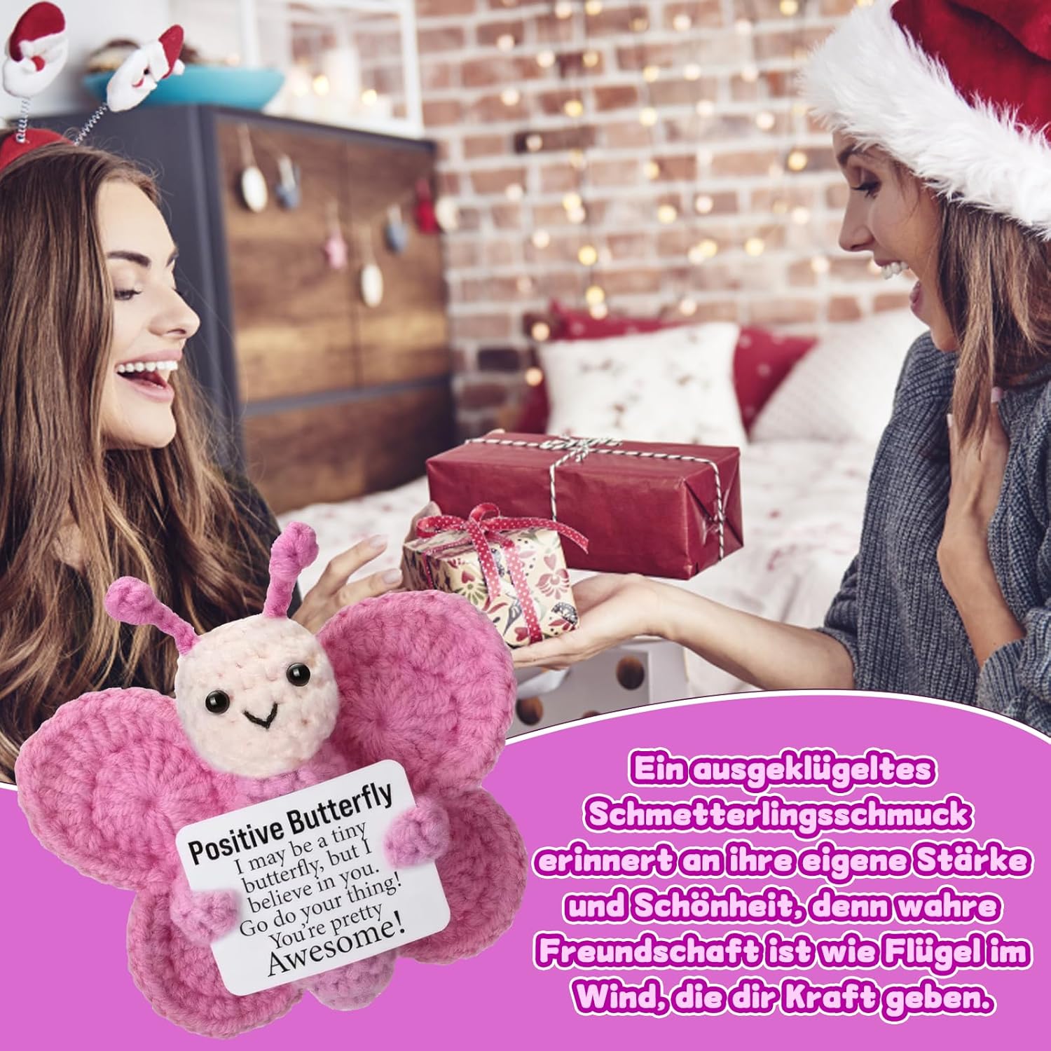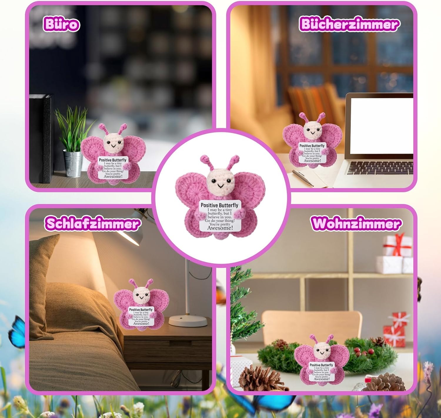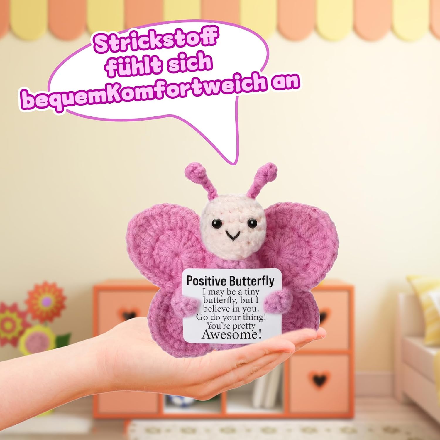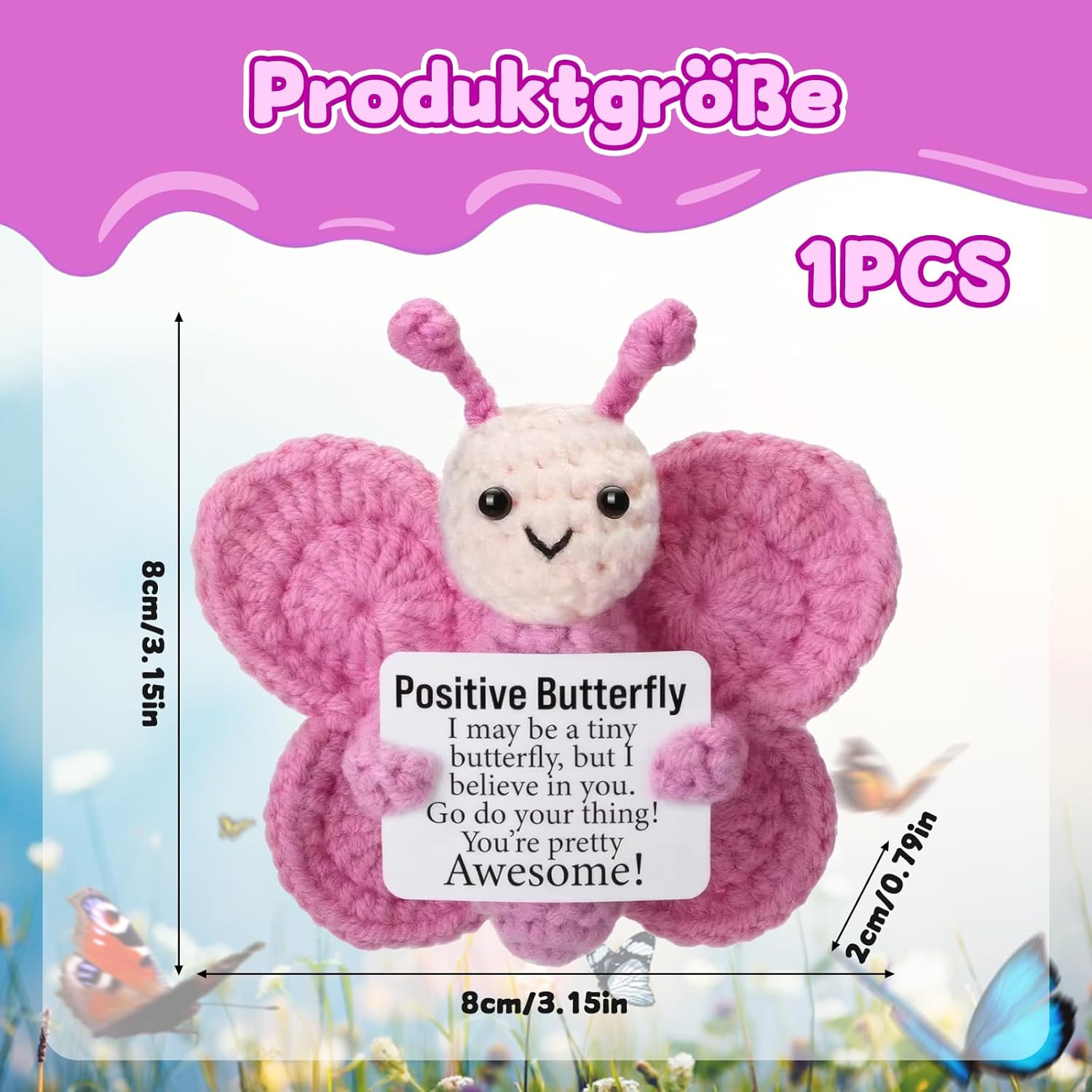 Supporto emotivo: la farfalla rosa è un amorevole animale all'uncinetto che offre conforto e sostegno emotivo; ideale per momenti stressanti o come piccola attenzione per i propri cari Lavorazione di alta qualità: realizzato a mano con materiali durevoli, mantiene la sua forma e il colore anche in caso di uso frequente; la farfalla è morbida e piacevole da tenere in mano Decorazione versatile: perfetta come decorazione da scrivania o per abbellire l'auto; la piccola farfalla si inserisce armoniosamente in diversi ambienti e diffonde umore positivo Dimensione pratica: con le sue dimensioni compatte, la farfalla è facile da trasportare; si adatta a qualsiasi borsa o può essere utilizzata come portachiavi Regalo speciale: un caloroso pensiero per occasioni speciali come anniversari o semplicemente come segno di affetto.