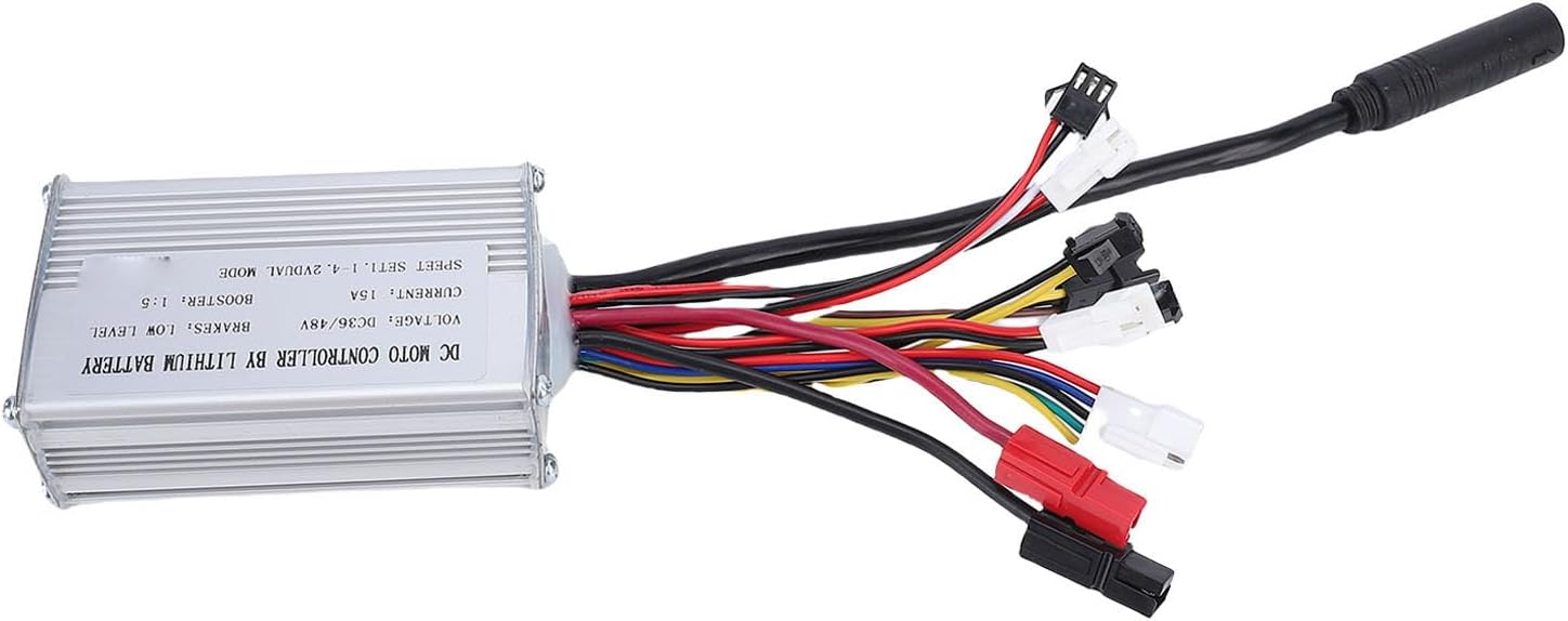 Controllo preciso del motore: questo controller brushless da 15 A garantisce una velocità stabile e uno sterzo del freno altamente sensibile per i motori, fornendo al conducente una manovrabilità precisa e aumentando il divertimento e la sfida di ogni corsa. Materiale in lega di alluminio: l'alloggiamento del controller scanalato in lega di alluminio garantisce un'eccellente dissipazione del calore e protegge in modo affidabile i circuiti interni dal sovraccarico termico. Costruzione robusta e sicura: i cavi per carichi pesanti e i collegamenti impermeabili del motore garantiscono un funzionamento sicuro e affidabile con un tasso di guasto molto basso. Il controller è progettato per un utilizzo affidabile in varie condizioni. Installazione semplice: progettato per comodità, il controller di velocità per bici elettrica può essere facilmente installato semplicemente seguendo lo schema elettrico e supporta motori da 250 W. Esperienza di guida migliorata: come controller a onda quadra per la conversione della bici elettrica, aumenta direttamente il piacere di guida ed è un aggiornamento ideale per i ciclisti che cercano un'esperienza di guida più sofisticata.