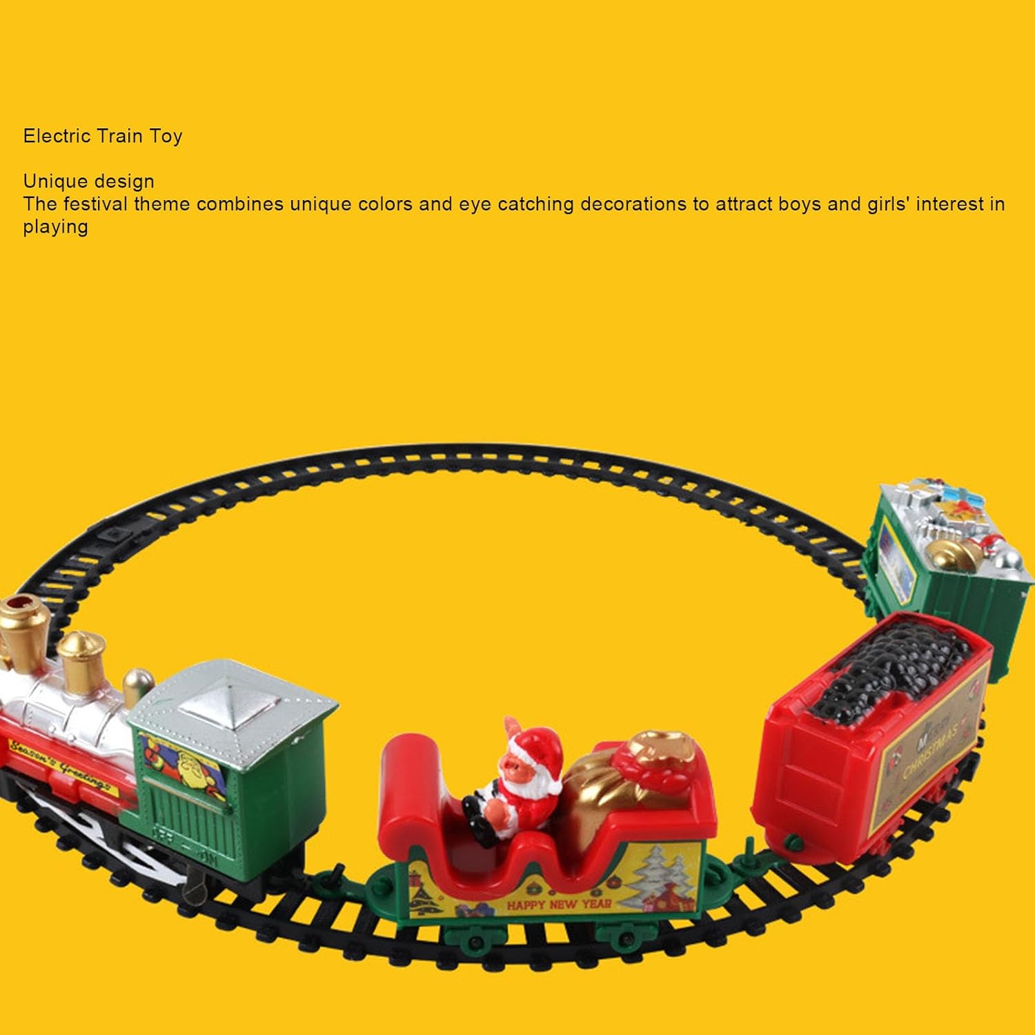 Stile unico: design a tema festivo con colori classici (rosso, verde, oro) e decorazioni come campane, che creano un ambiente festoso, eccellente per decorazioni e regali natalizi. Combinazione flessibile di binari: viene fornito con vari componenti di binari (diritti, curvi, scambi) per consentirti di costruire liberamente diversi layout di binari, ispirando creatività e abilità pratiche, supportando infinite costruzioni innovative. Esperienza del treno elettrico: alimentato da batterie, il treno giocattolo può funzionare automaticamente sui binari, fornendo un'esperienza realistica di funzionamento del treno senza la necessità di spingere manualmente, migliorando il divertimento interattivo. Materiale sicuro: realizzato in plastica di alta qualità con bordi lisci e senza sbavature, conforme agli standard di sicurezza dei giocattoli, consentendo ai genitori di stare tranquilli per il gioco di ragazzi e ragazze. Display a doppio scopo: compatto e leggero, adatto per essere posizionato su scrivanie, tavolini o vetrine, funge da giocattolo di intrattenimento e anche come decorazione festosa per adornare l'ambiente domestico, pratico e ornamentale.