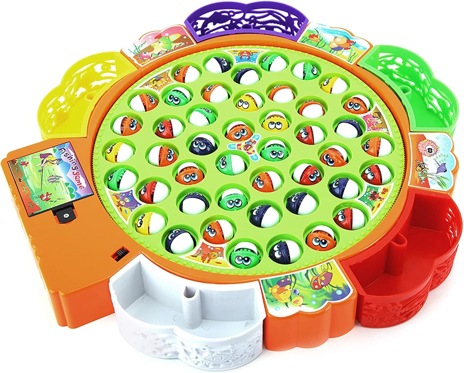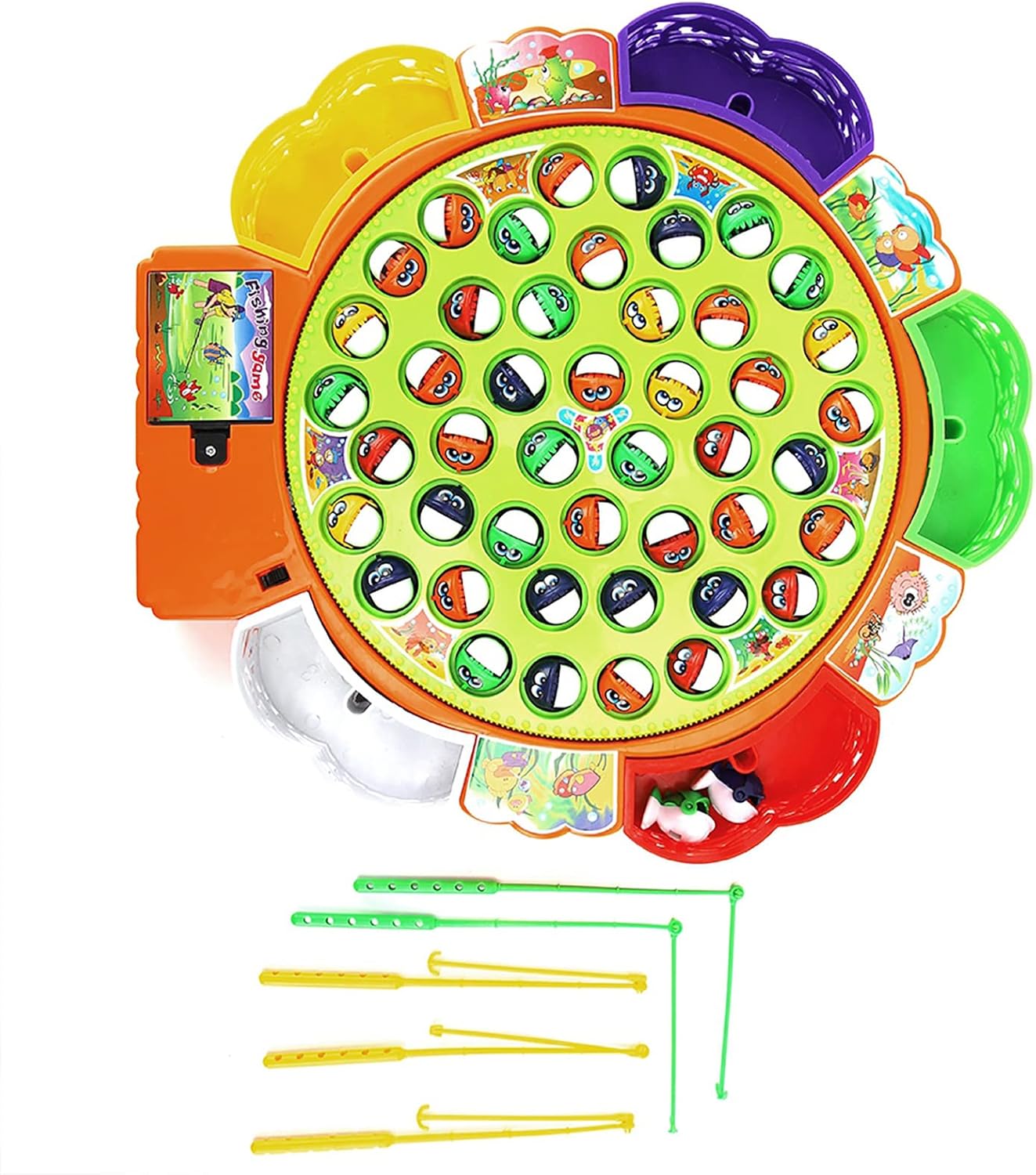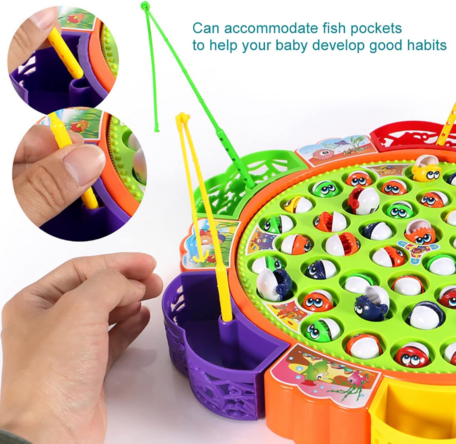1. Può ospitare tasche per pesci per aiutare il tuo bambino a sviluppare buone abitudini 2. Aggiorna la canna da pesca, flessibile, facile da pescare e più resistente 3. Migliora i piccoli pesci, aumenta la bocca dei pesci e rendili più facili da catturare 4,5 persone possono giocare contemporaneamente, l'interazione genitore-figlio è più interessante 5. Con musica accattivante e luci a LED lampeggianti (il suono può essere disattivato).