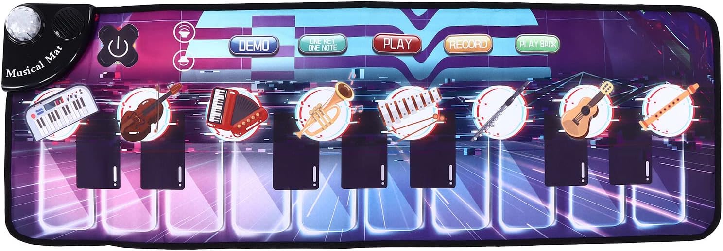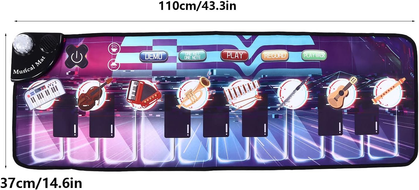 Design piccolo e portatile: il pad musicale è pieghevole, facile da usare e risparmia spazio quando non è in uso e risparmiare tempo ed energia. Migliora la capacità di apprendimento: quando i bambini ascoltano la musica, possono cantare e ballare insieme, possono stimolare le loro abilità linguistiche e il coordinamento. Ottimo per le vacanze o il compleanno: il nostro tappetino a terra per bambini è il per Natale, compleanni o qualsiasi occasione speciale. Materiale di stoffa durevole: il tappetino da danza per è realizzato in materiale di stoffa di alta qualità, il tappetino per è progettato per durare molte sessioni di danza. Flash Effect: Piano Keyboard Game Pad con un effetto flash, che è un pratico giocattolo musicale per bambini e genitori per rafforzare le loro relazioni.