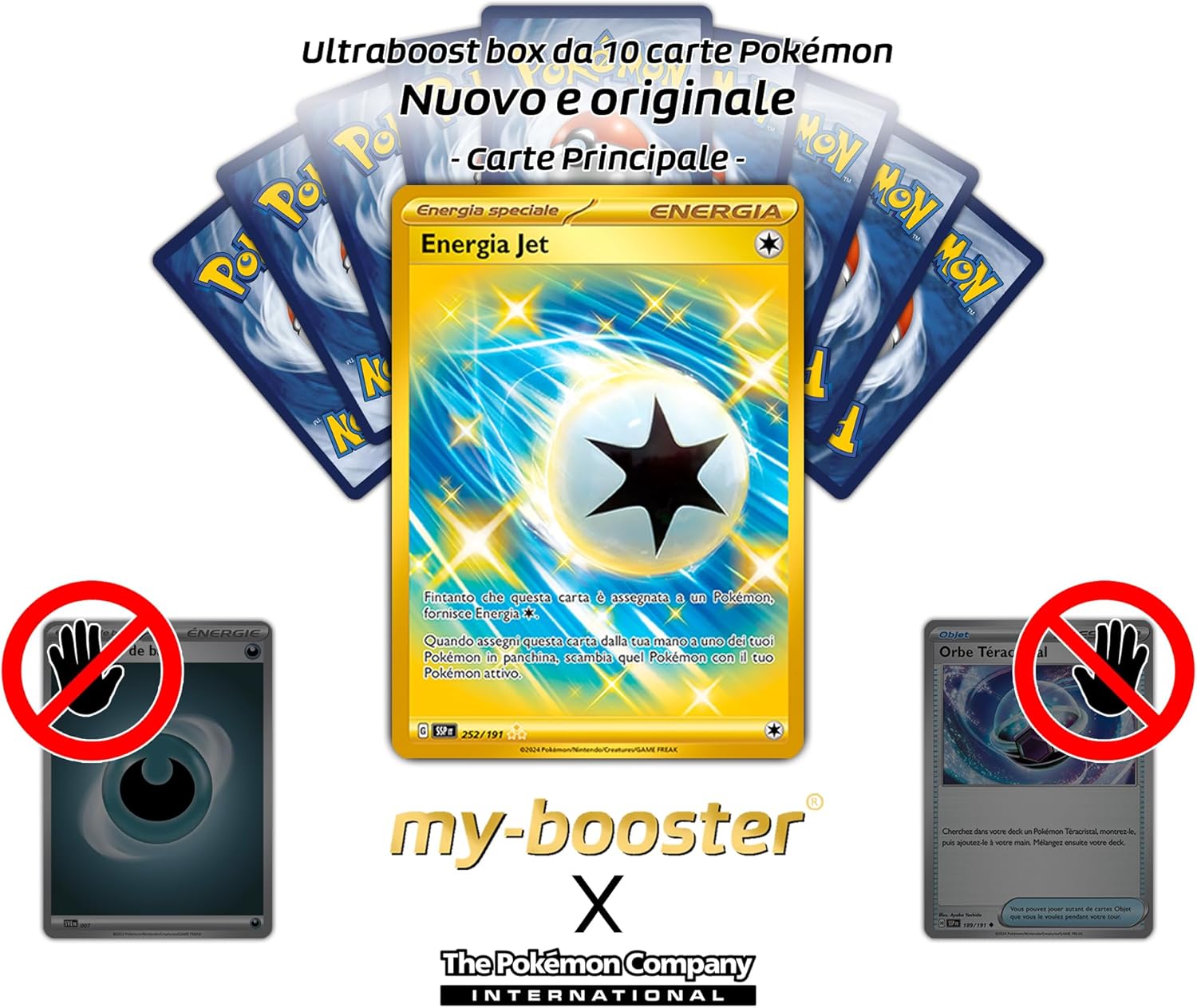 Trova i tuoi Pokémon preferiti nel tuo negozio amazon.fr/my-booster Le scatole Ultraboost e Myboost contengono la carta principale nella parte anteriore delle scatole + 9 carte Pokémon aggiuntive Nuove carte originali certificate "The Pokemon Company" Nessuna carta allenatore/energia - Nessuna carta duplicata Alcune carte aggiuntive incluse potrebbero far parte di una serie Pokémon diversa dalla serie della carta principale in questa scatola.