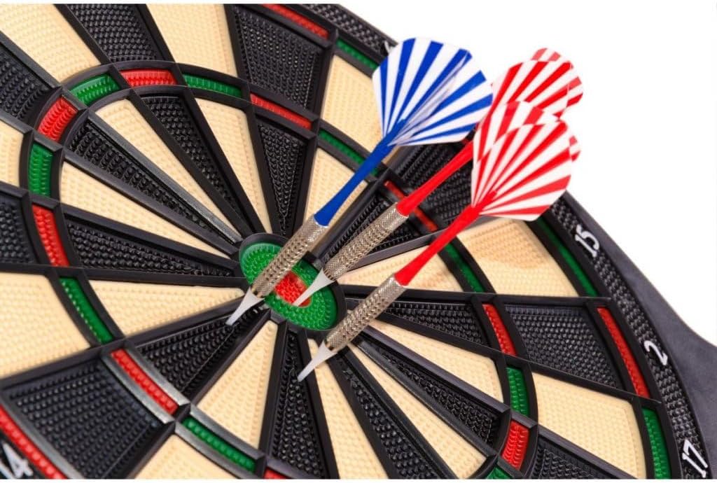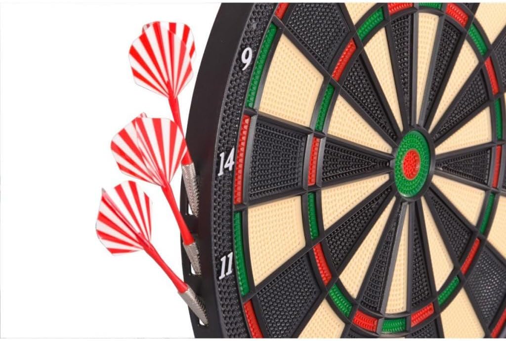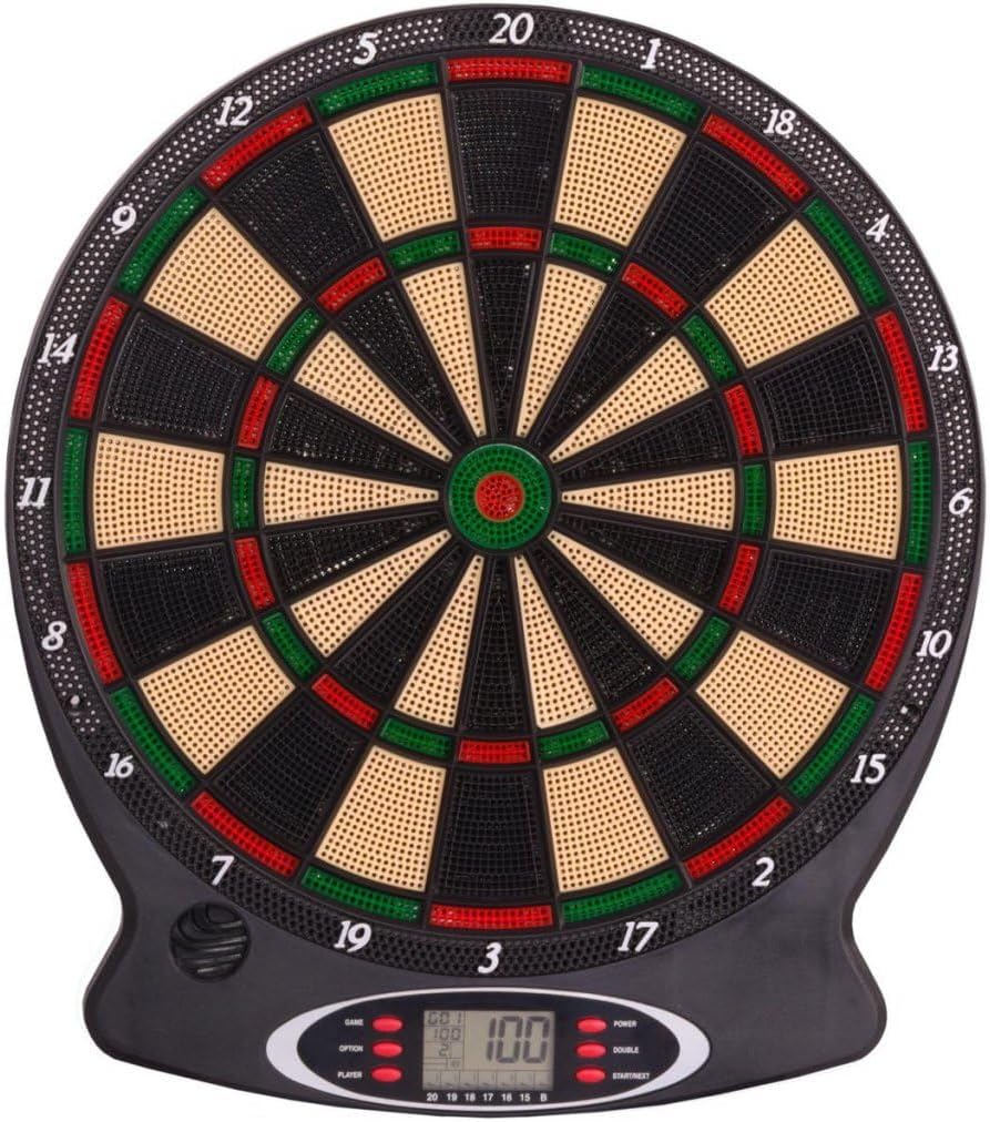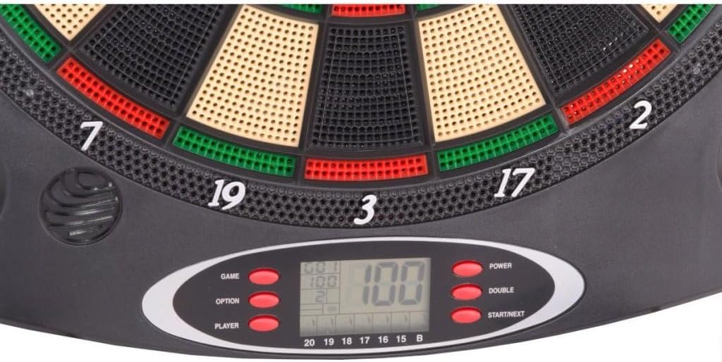 Display LCD: mostra chiaramente il tuo punteggio attuale durante il gioco Il materiale durevole e resistente agli urti garantisce prestazioni di lunga durata Gli effetti sonori migliorano il divertimento e l'eccitazione di ogni partita Fino a 8 giocatori – perfetto per giocare da solo o tornei familiari Certificato CE per gli standard di sicurezza e qualità Set completo incluso: 6 freccette, punte extra, alberi, alette, viti e manuale Alimentato a batteria: funziona con 3 batterie AA da 1,5 V (non incluse)