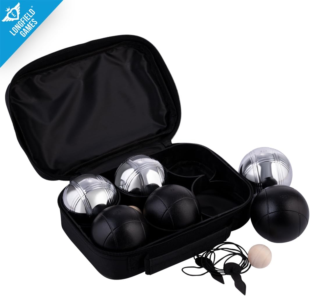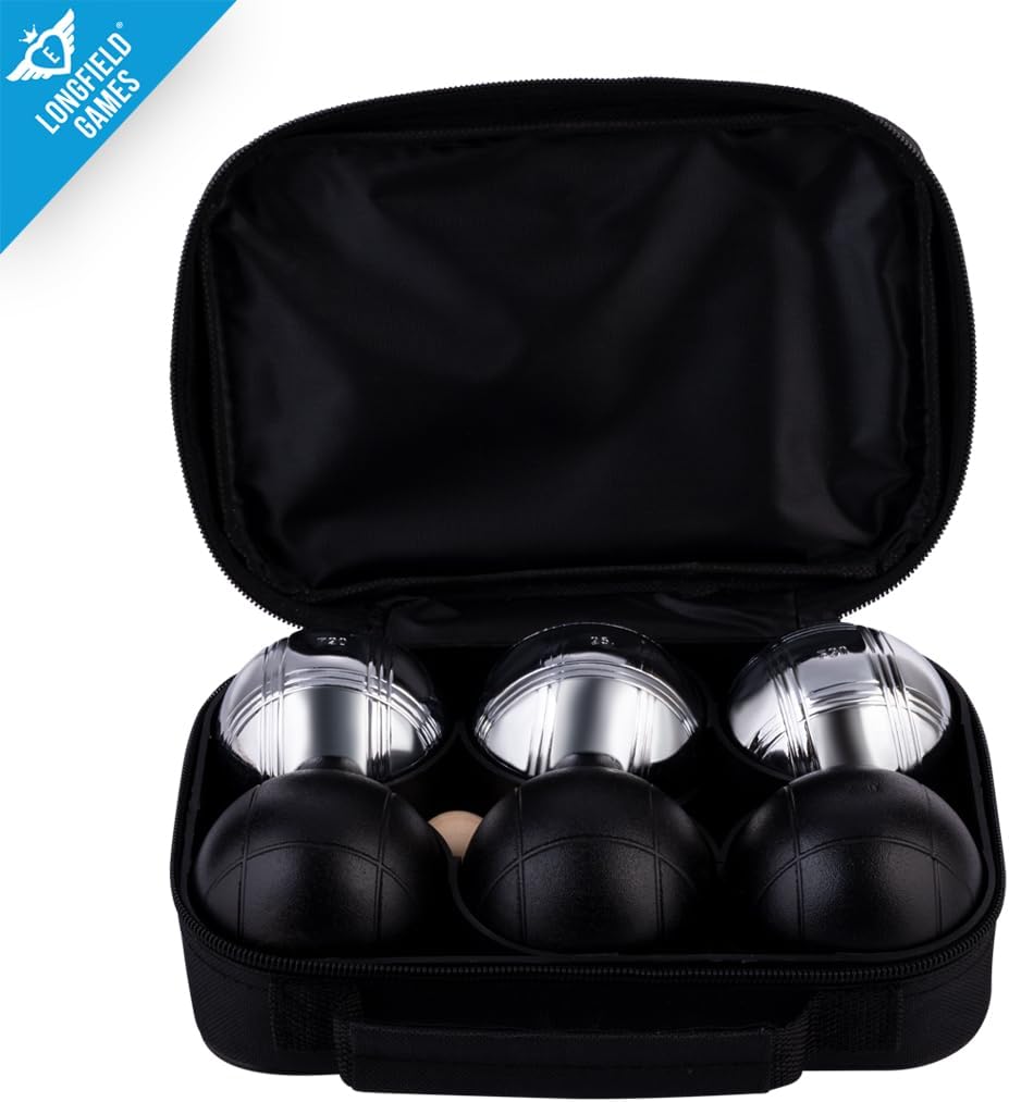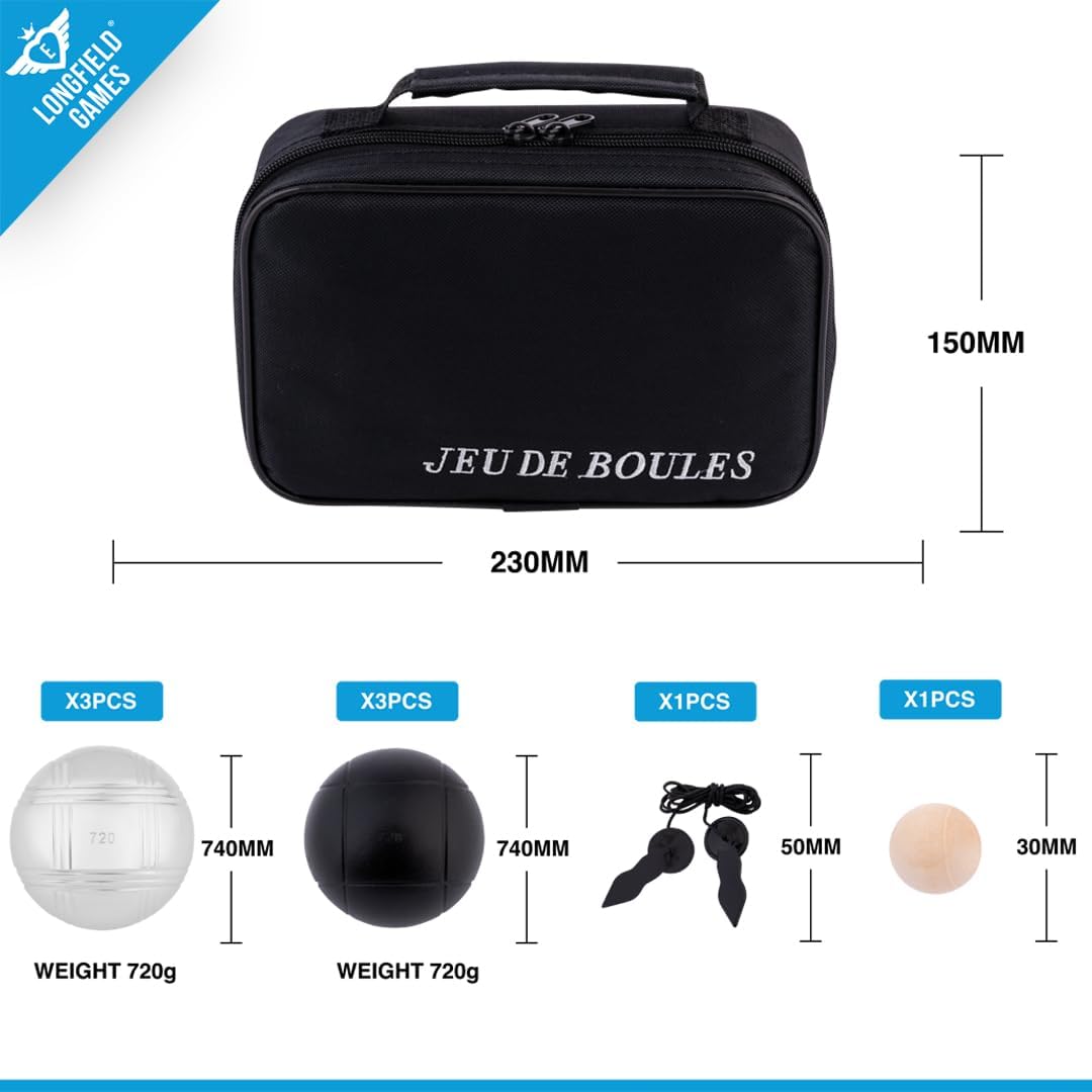 Bel set di bocce per il tempo libero, per 2 giocatori, set borsa nylon con Fornite con un astuccio nero, con cerniera e maniglia. Set con sfere in metallo per giocare alla variante petanca " triplette" composto da 6 elementi di peso di 720 grammi e di diametro 74 mm.la scatola viene completata da 1 pallino in legno e 1 misuratore distanze. TRIPLETTE : 2 x 3 bocce con segni diversi per poter distiguerle meglio Non essere propriamente adatte per il gioco dei più piccoli