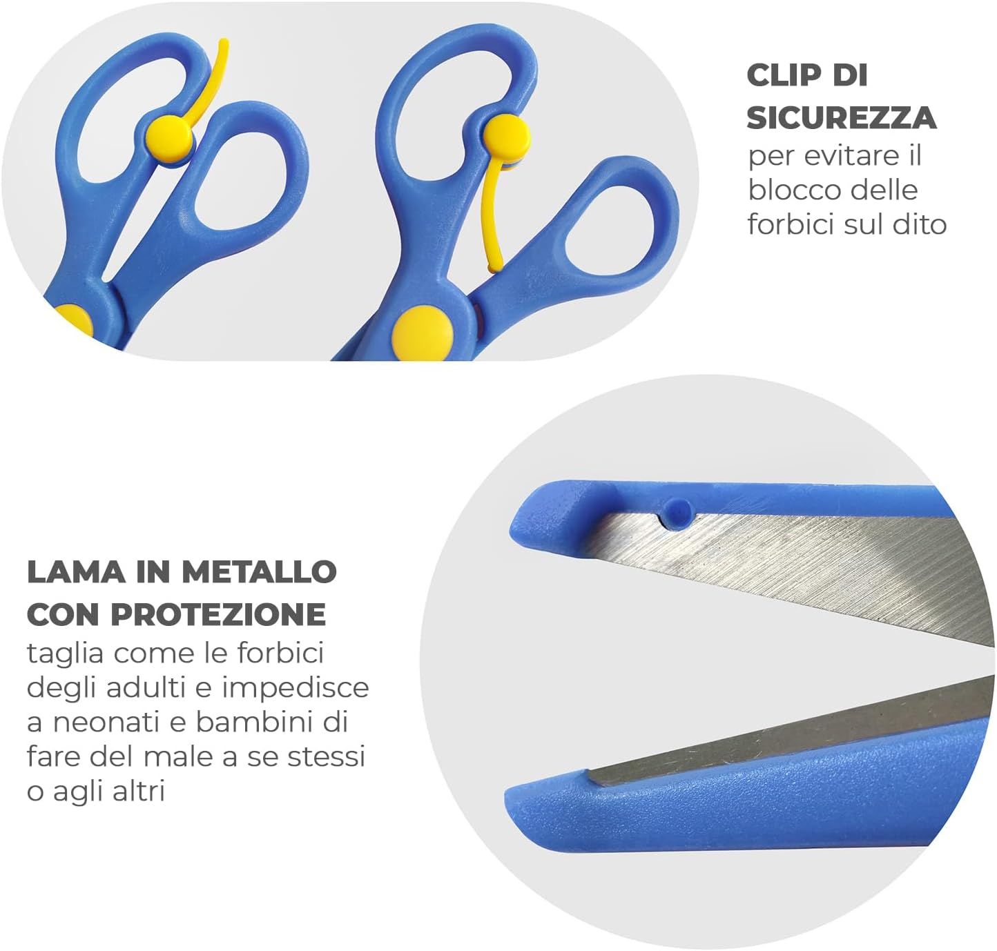 ✂FORBICI PER BAMBINI A PARTIRE DA UN ANNO DI ETÀ con clip speciale di sicurezza per assicurare l'incolumità del vostro bambino, mentre esplora la sua creatività ✂4 FORBICI CON LAMA IN METALLO che taglia come normali forbici attraverso carta, cartone, plastilina, pasta da modellare, argilla e molto altro, e con un rivestimento in plastica rigida per garantire la sicurezza e una piacevole sensazione d'impugnatura ✂ADATTE A ESSERE USATE SIA A SINISTRA CHE A DESTRA, queste forbici a punta tonda per bimbi sono progettate per migliorare l'attività motrice fine. ✂SET COMPLETO DI 4 COLORI così che tutti possano scegliere il loro preferito e a un prezzo scontato! ✂I PRODOTTI A MARCHIO LOBOME sono pianificati e disegnati in Germania, per soddisfare gli standard del mercato Europeo, portando prodotti di alta qualità a prezzi competitivi