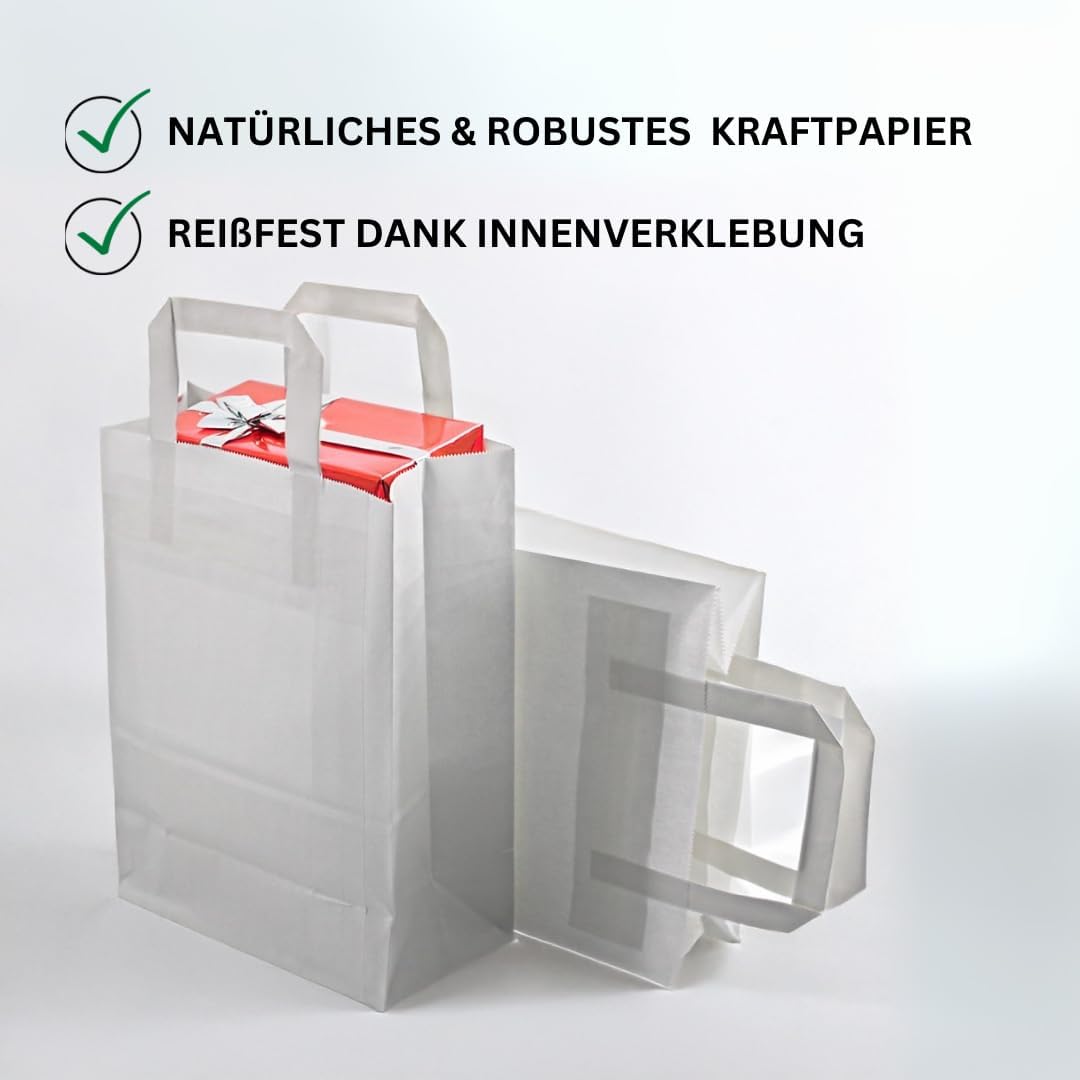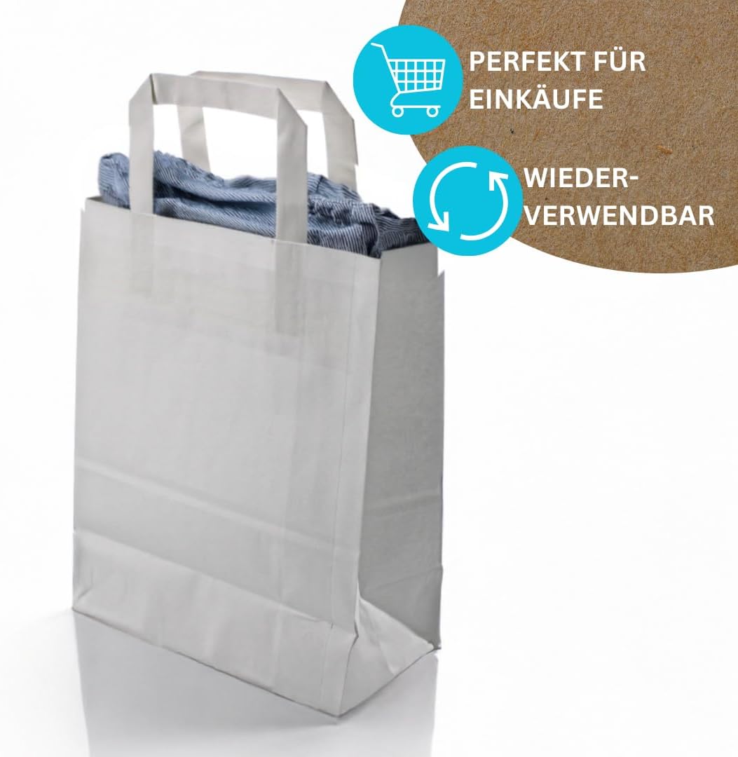 Le borse di carta offrono un'alternativa ecologica ai sacchetti di plastica. Sono realizzati con materie prime rinnovabili e sono biodegradabili, a differenza dei sacchetti di plastica. Le buste di carta con manici sono versatili e sono perfette per trasportare gli acquisti, come materiale da imballaggio o anche come piccoli souvenir. I nostri sacchetti di carta kraft sono disponibili in diversi colori come marrone o bianco e in diverse dimensioni. La nostra gamma spazia dai sacchetti di carta grandi a quelli piccoli. I sacchetti regalo di compleanno per bambini sono souvenir ideali per i bambini. Possono essere riempiti con piccole sorprese come caramelle o piccoli giocattoli e offrire un simpatico ricordo di un giorno speciale. I sacchetti di carta marrone e bianco in carta kraft o cartone, che misurano 22x11x28 cm, sono ideali come sacchetti di riempimento, sacchetti regalo, borse per la spesa o borse per la spesa.