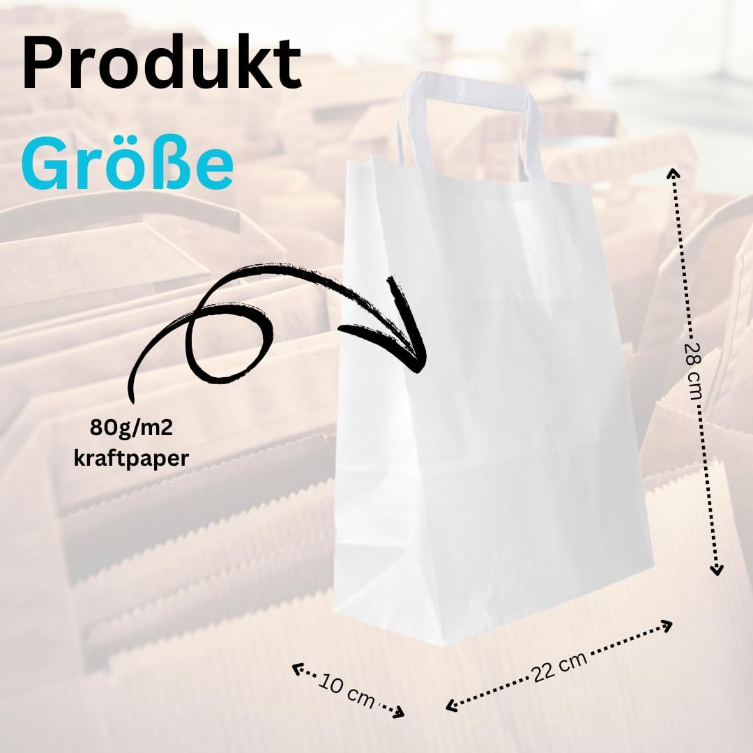Le borse di carta offrono un'alternativa ecologica ai sacchetti di plastica. Sono realizzati con materie prime rinnovabili e sono biodegradabili, a differenza dei sacchetti di plastica. Le buste di carta con manici sono versatili e sono perfette per trasportare gli acquisti, come materiale da imballaggio o anche come piccoli souvenir. I nostri sacchetti di carta kraft sono disponibili in diversi colori come marrone o bianco e in diverse dimensioni. La nostra gamma spazia dai sacchetti di carta grandi a quelli piccoli. I sacchetti regalo di compleanno per bambini sono souvenir ideali per i bambini. Possono essere riempiti con piccole sorprese come caramelle o piccoli giocattoli e offrire un simpatico ricordo di un giorno speciale. I sacchetti di carta marrone e bianco in carta kraft o cartone, di dimensioni 22x10x28 cm, sono ideali come sacchetti di riempimento, sacchetti regalo, borse per la spesa o borse per la spesa.