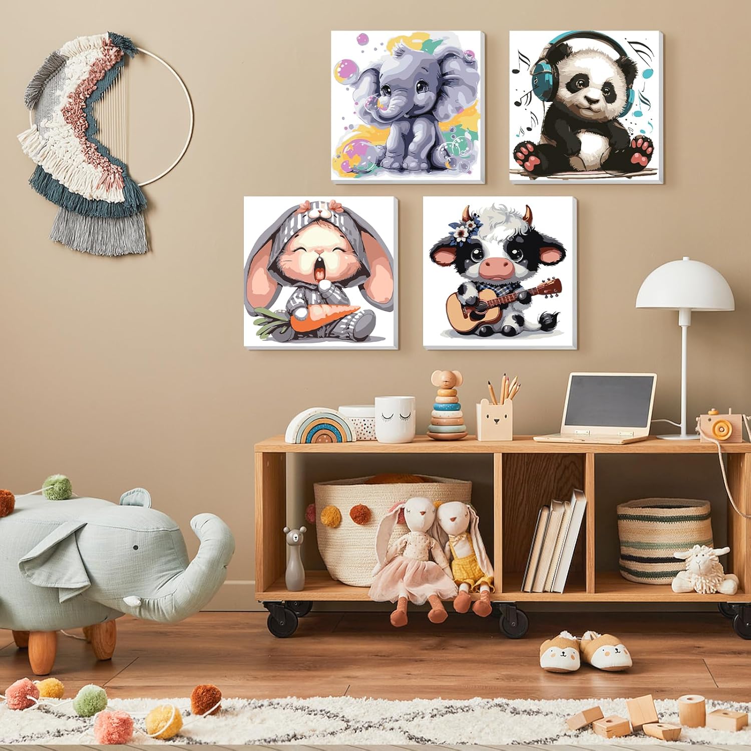 EOBROMD 4 Pezzi Dipingere con i Numeri Adulti Bambini Animale Carino, Paint by Numbers Kits, Tela Senza Rughe con Pittura con i Numeri, Tra Cui Cornice in Legno, Decorazione Domestica 20x20cm