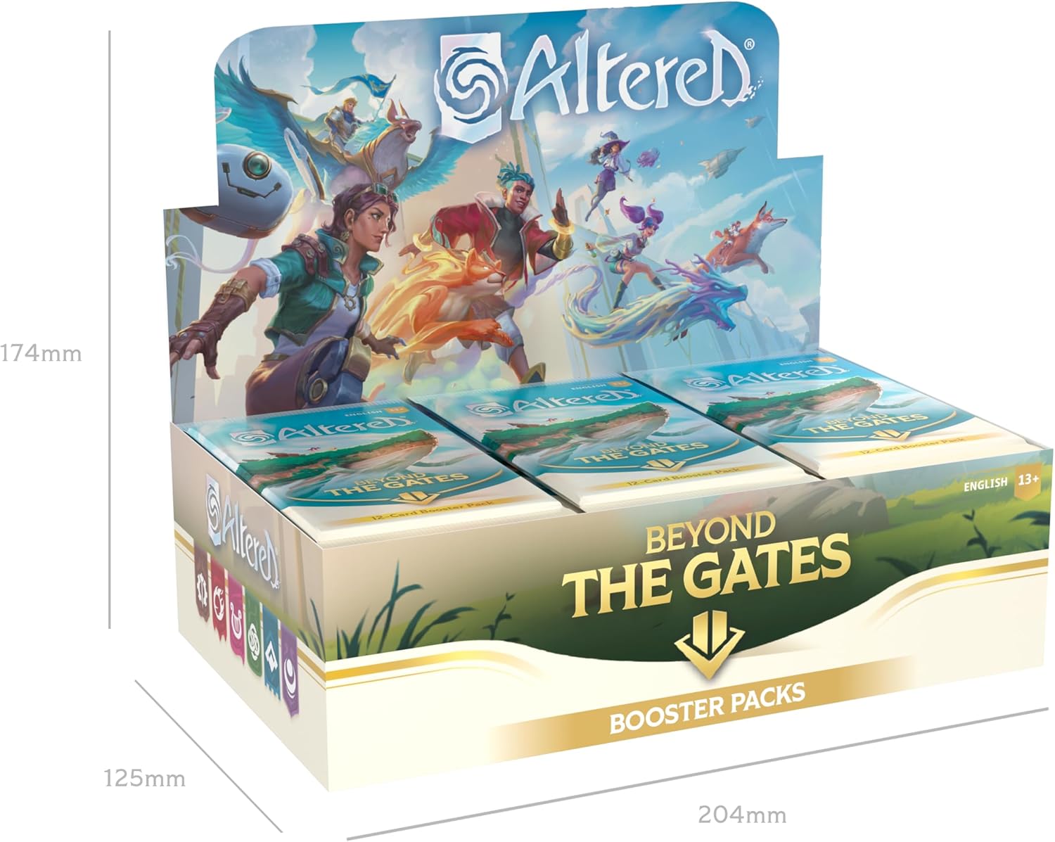 SCOPRI UN NUOVO EMOZIONANTE MONDO: immergiti nel ricco e colorato universo di Altered, dove giochi nei panni di un eroe tra sei diverse fazioni, esplorando e ripristinando l'equilibrio nelle regioni alterate. GODITI UN'ESPERIENZA DI GIOCO UNICA E MODERNA: sperimenta il gameplay innovativo di Altered con meccaniche di gioco senza combattimento, turni rapidi, un sistema di mana ridisegnato e la meccanica di Riserva per una sfida rinfrescante. COLLEZIONA CARTE UNICHE PER MAZZI PERSONALIZZATI: migliora il tuo gioco con carte uniche ogni 8 buste circa, assicurandoti che il tuo mazzo rifletta il tuo stile. Raccogli le carte che nessun altro ha e sorprendi i tuoi avversari. COSTRUISCI E GESTISCI IL TUO MAZZO ONLINE: portalo al livello successivo con la nostra app digitale Altered. Scansiona le tue carte per gestire la tua collezione, costruire mazzi, esplorare la storia, commerciare e interagire con la community, tutto in un unico posto. VANTAGGI DELL'ESPOSIZIONE BOOSTER: Ogni espositore di buste “Beyond the Gates” include 36 buste, che promettono da 4 a 5 carte uniche per espositore. I pacchetti contengono 1 Eroe, 3 Rare, 8 Comuni e una carta Gettone o Foiler, con carte Uniche che aggiungono pepe alla tua collezione.